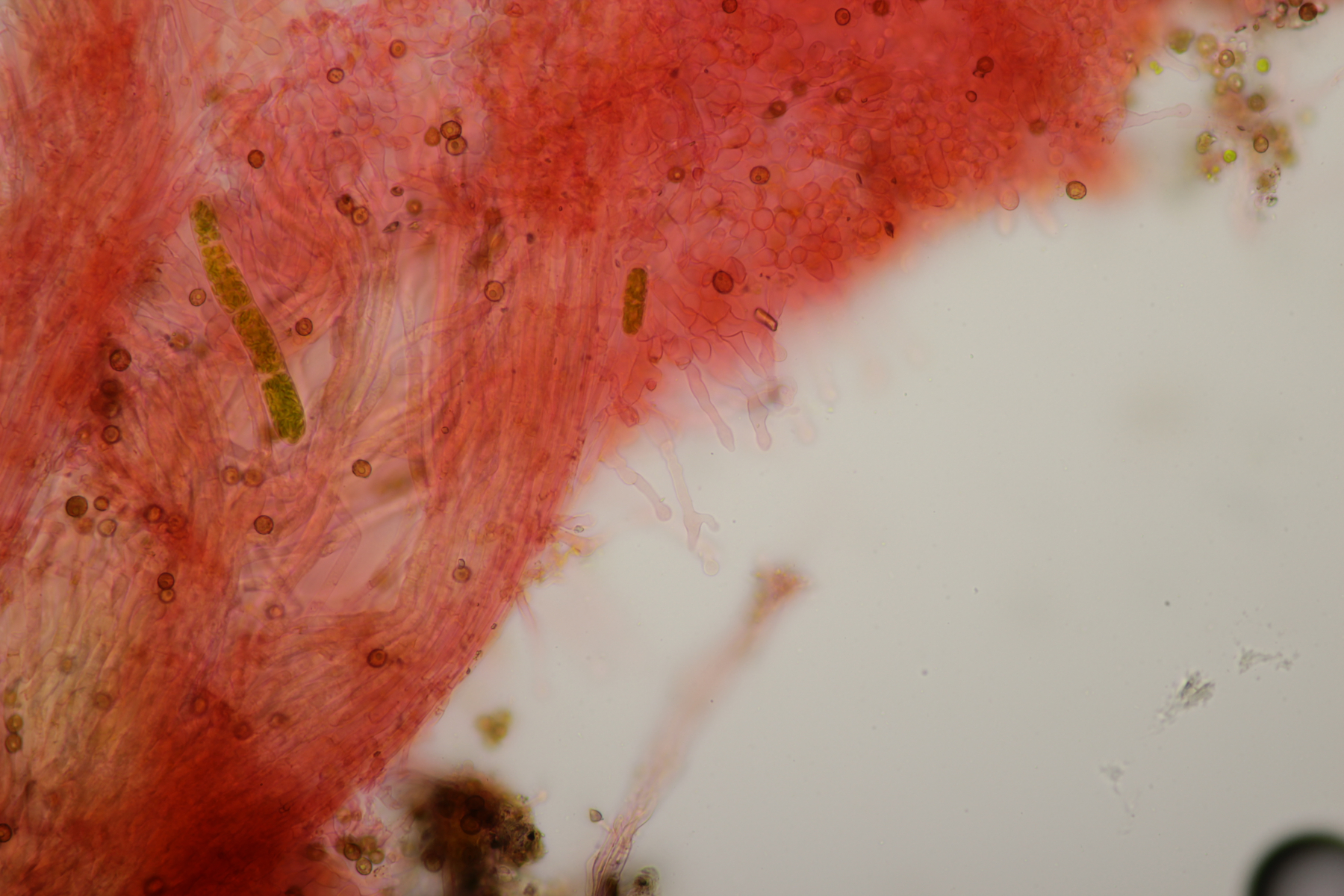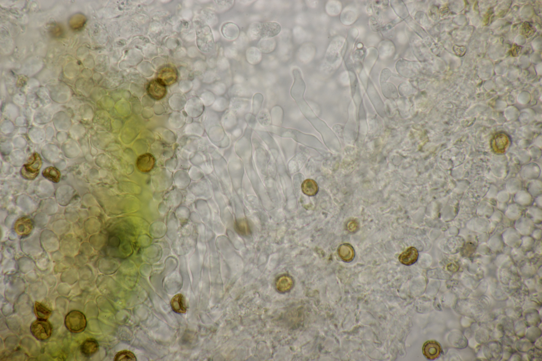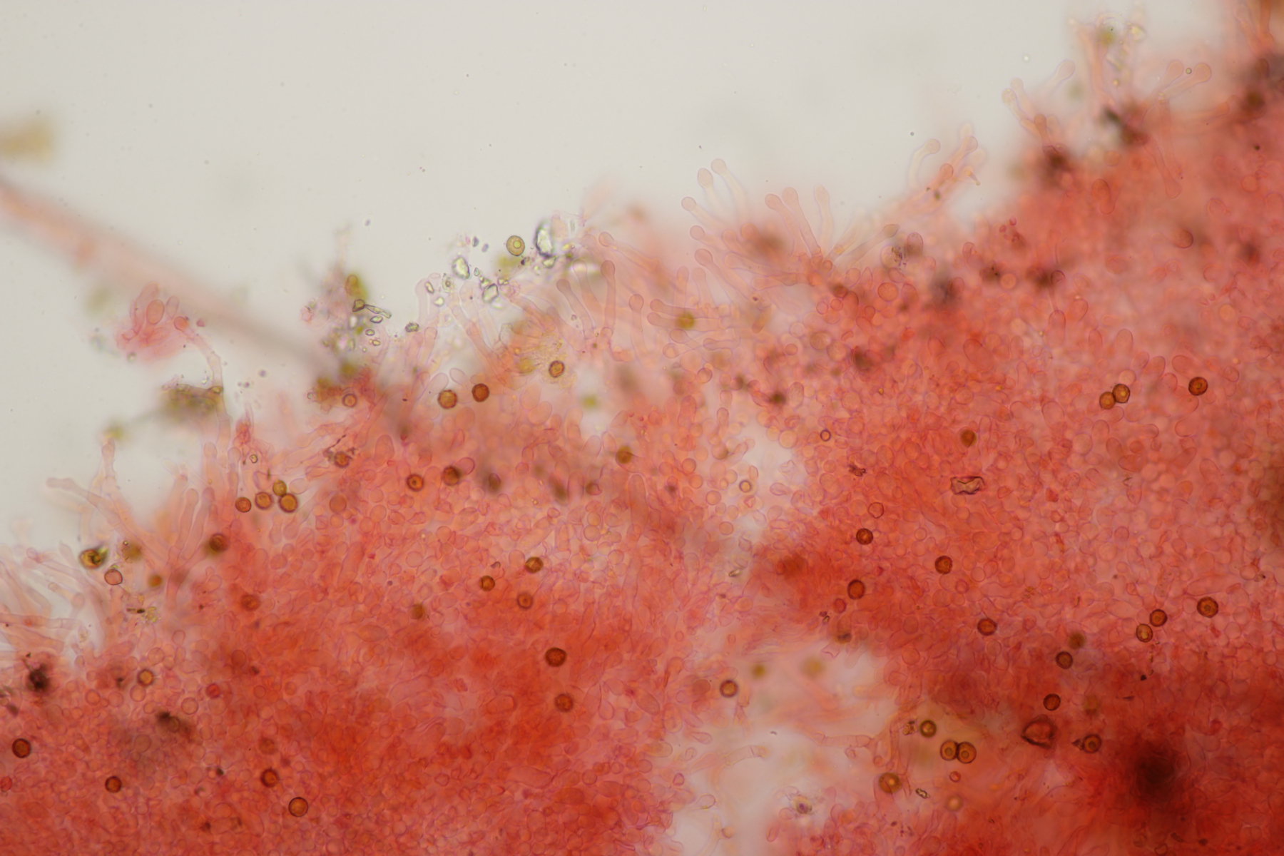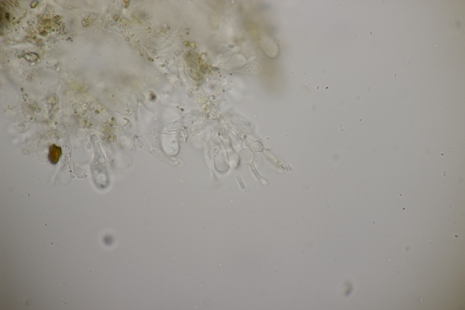 Was das hier für Strukturen sind, weiß ich leider nicht. Sind es 1-sporige Basidien? Oder ein weiterer Zystidentyp?