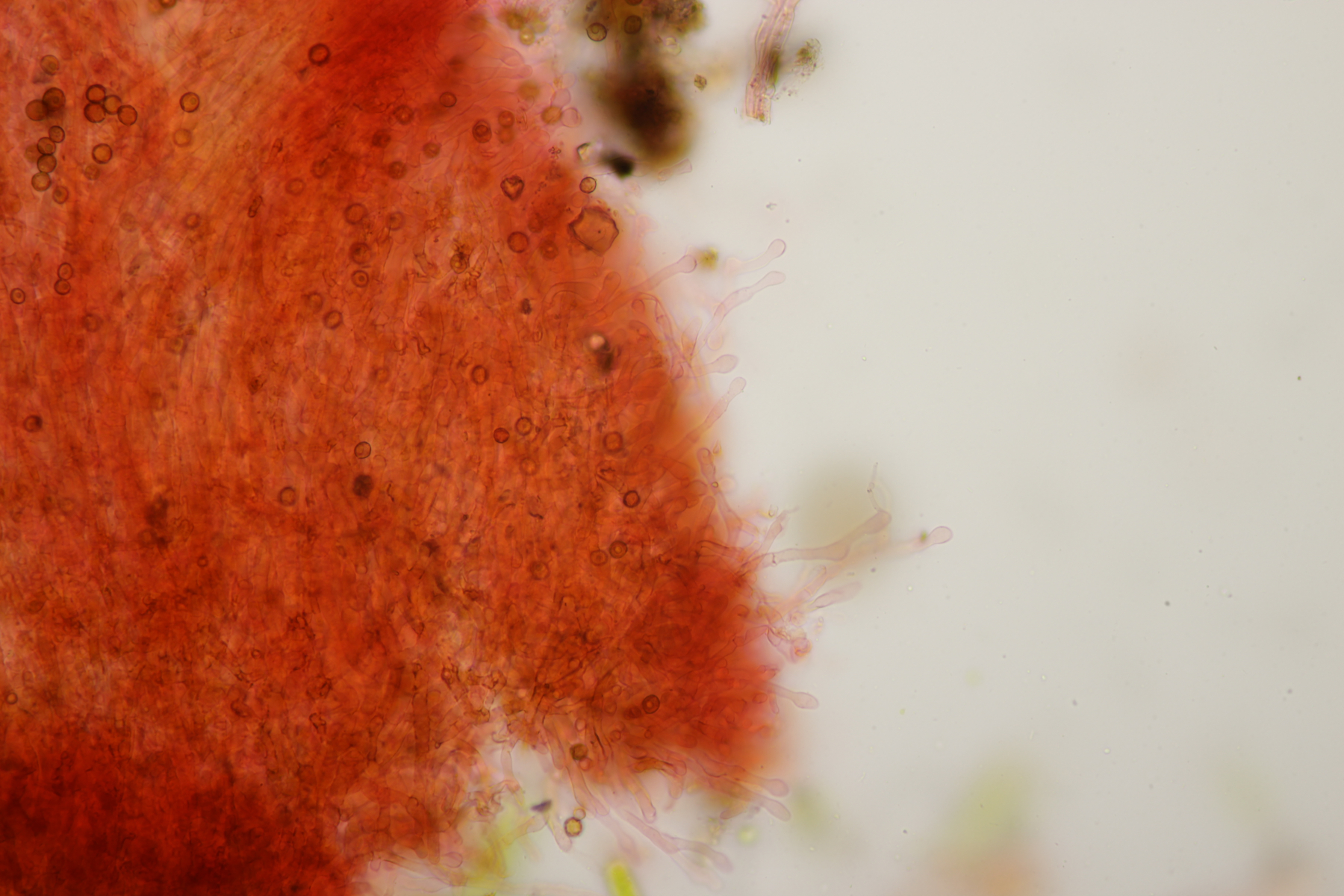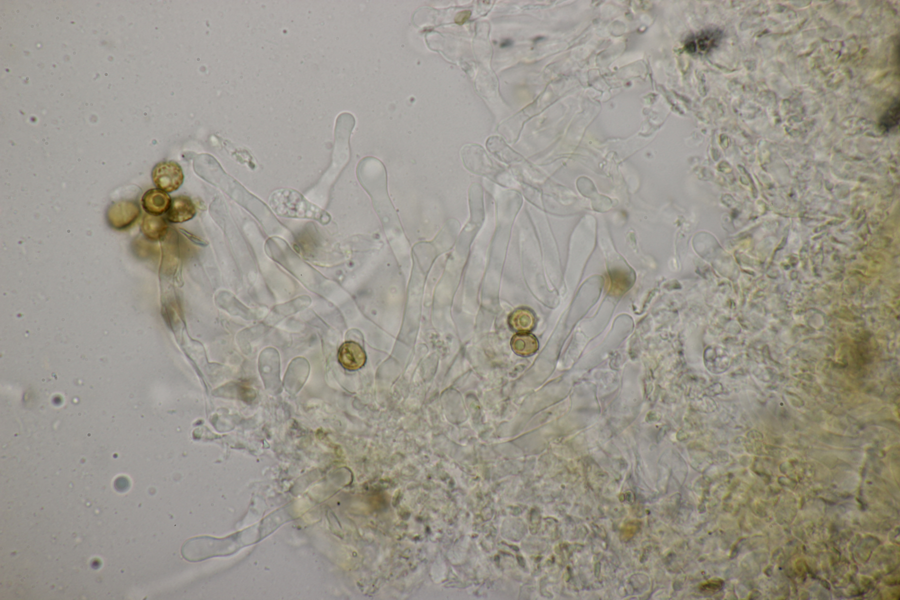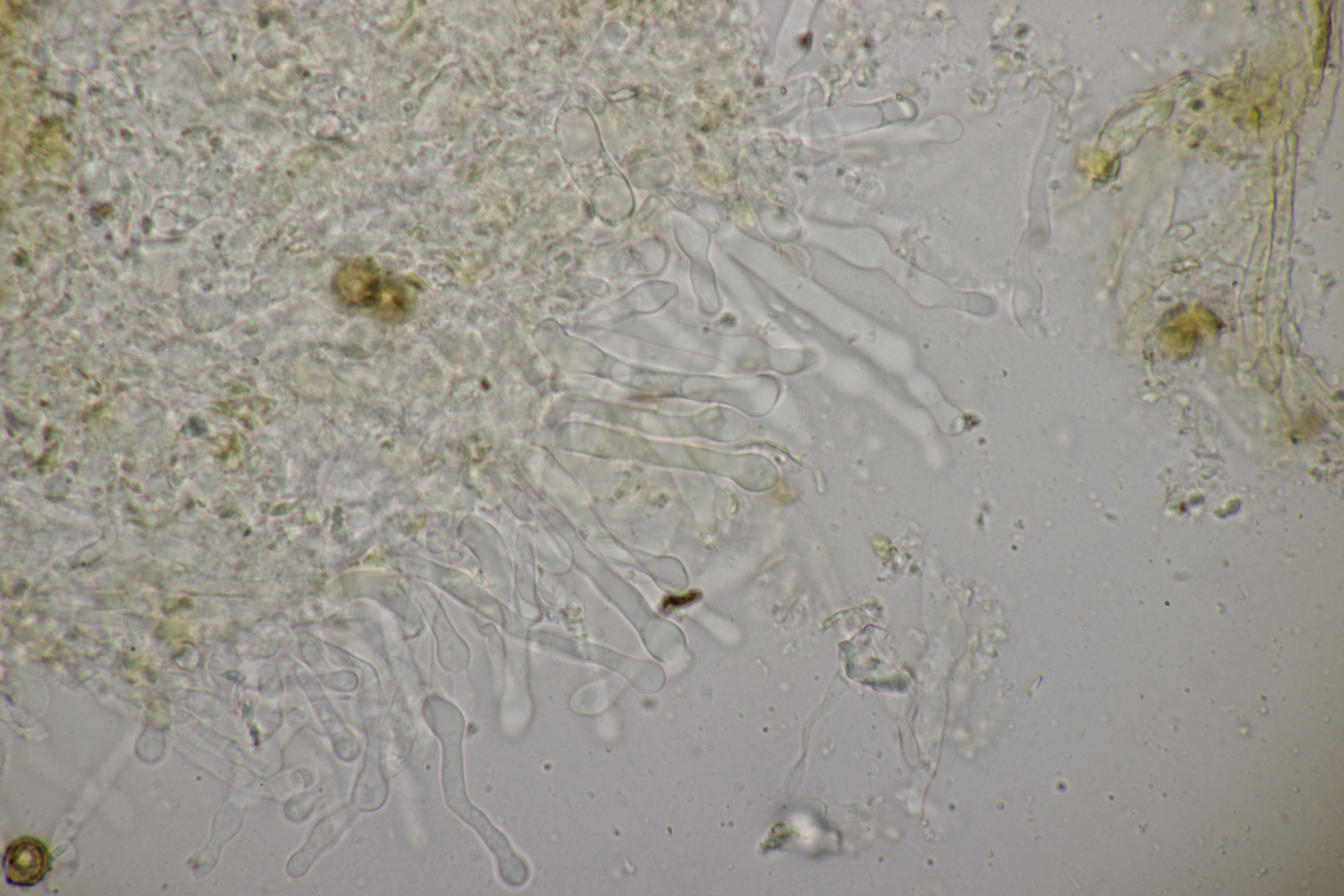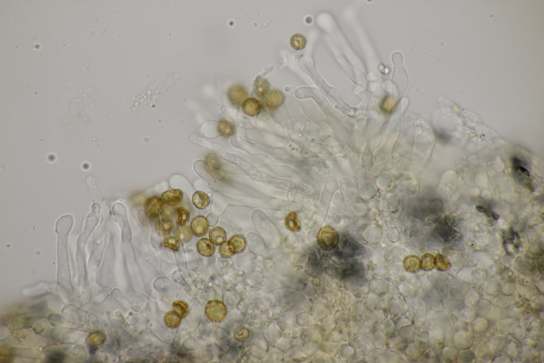 Was das hier für Strukturen sind, weiß ich leider nicht. Sind es 1-sporige Basidien? Oder ein weiterer Zystidentyp?