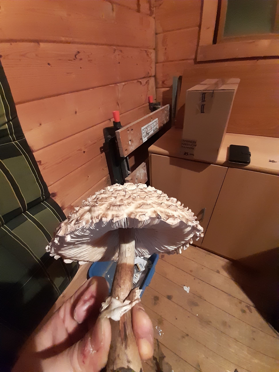Pablo, der Jungfernschirmling ähnelt vom Aussehen her sehr meinem Exemplar aber ich glaube, er ist zu groß. Die werden wohl eher nur 10cm im Schirmdurchmesser. Meiner hat jetzt 11cm und die anderen waren eher größer.