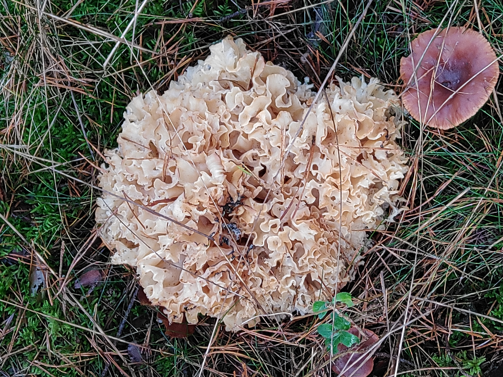 Nach all den Ascos noch eine kleine Abwechslung, die es neben einem frisch aussehenden Steinpilz und vielen, teils noch festen Maronen und Frostschnecklingen auch noch gab: Sparassis crispa (Krause Glucke):
