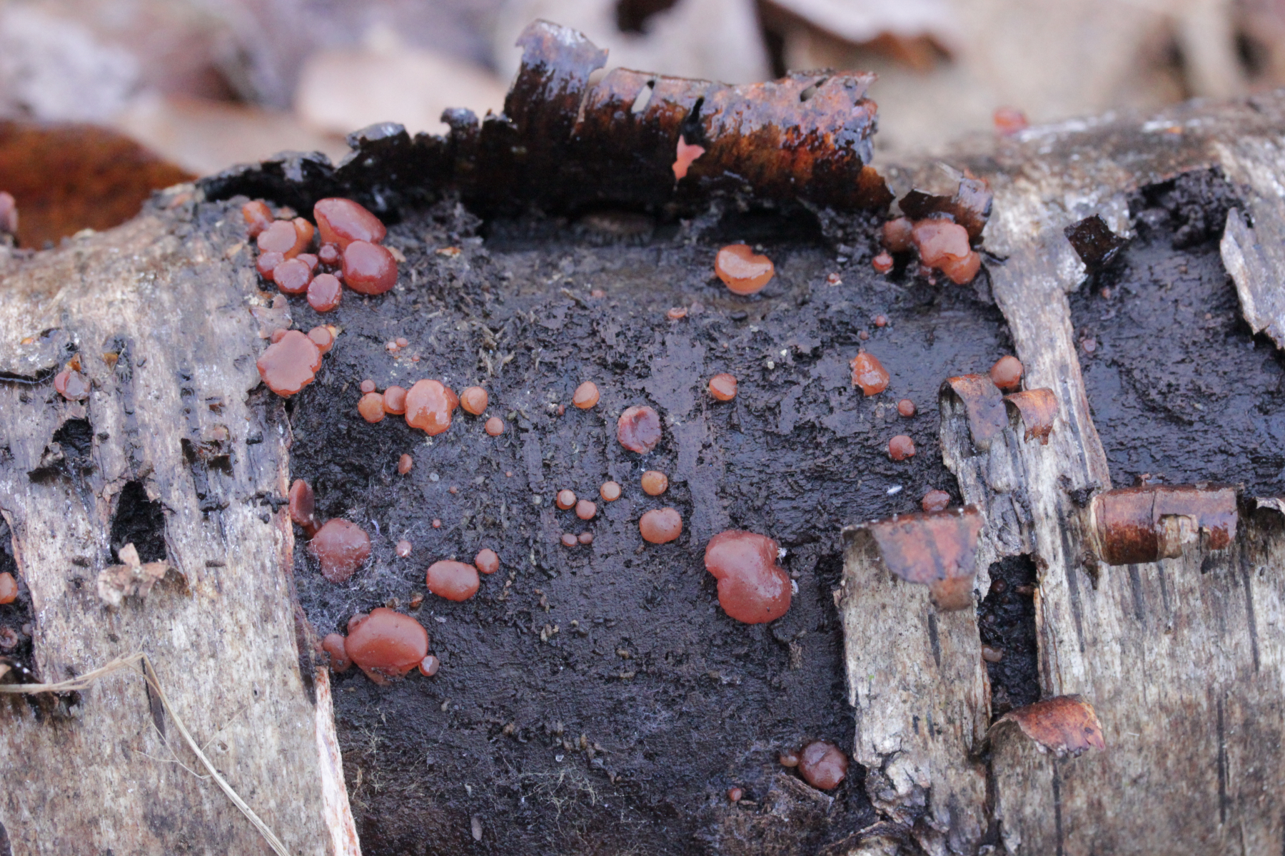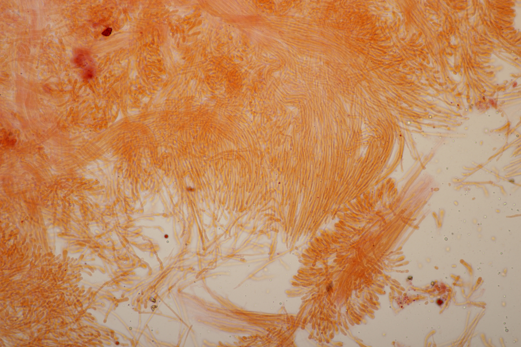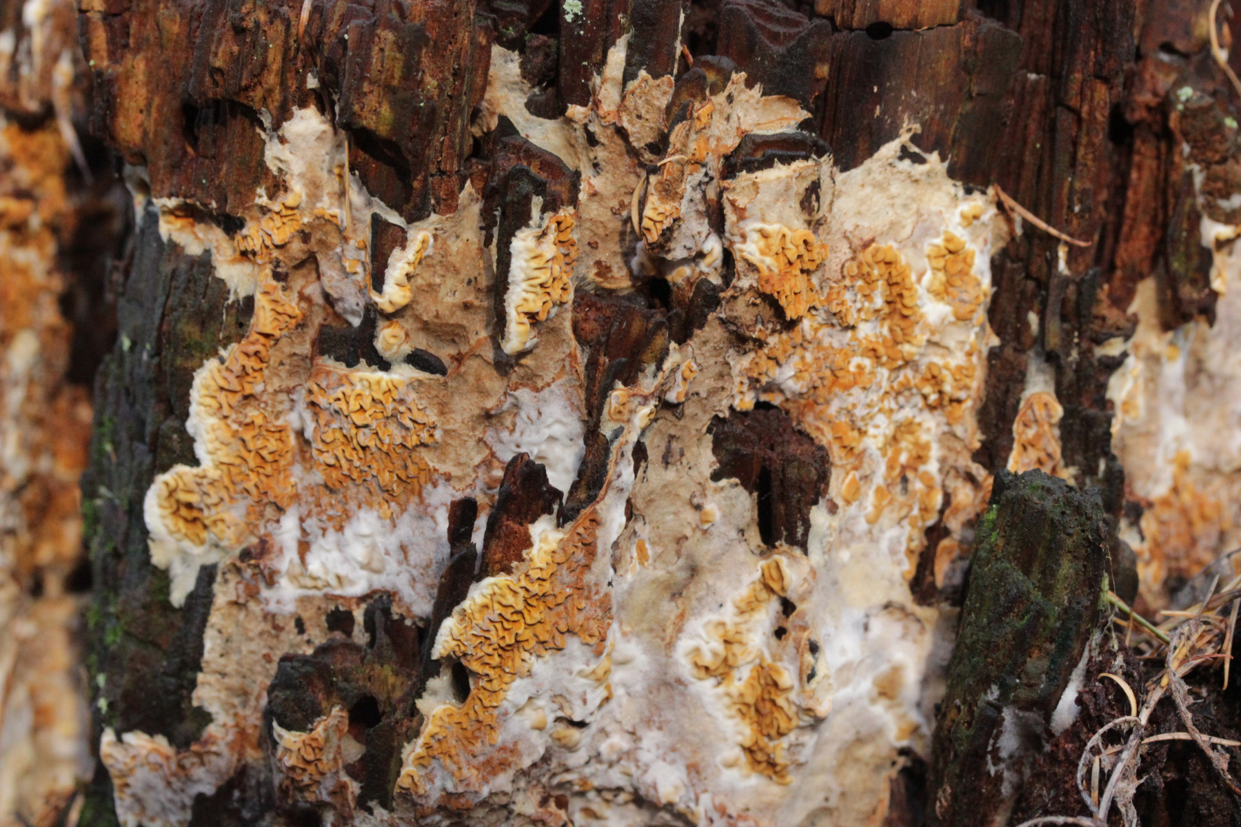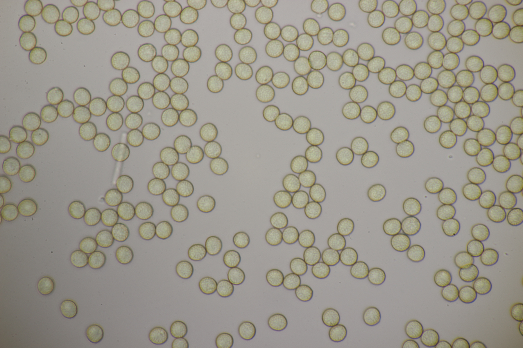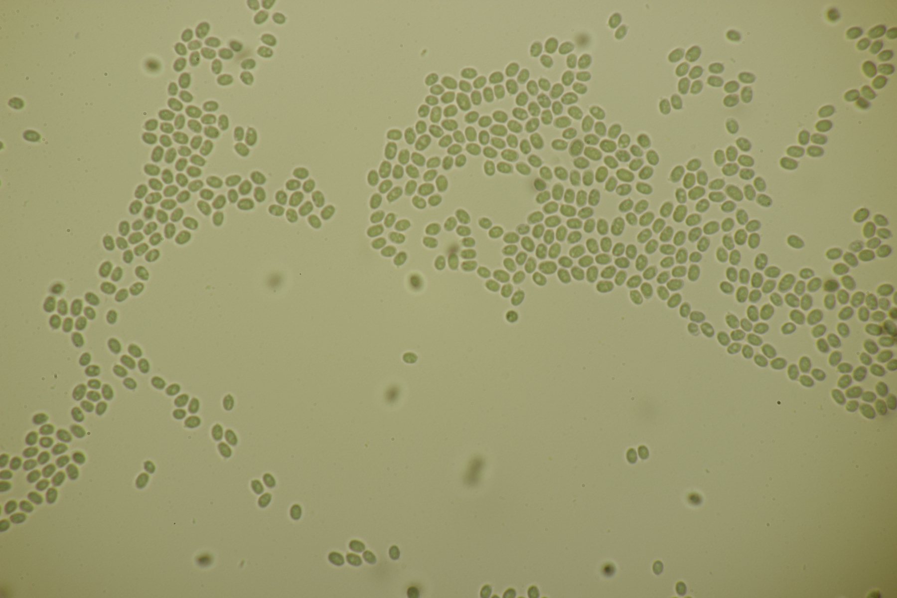 1. Ein Schleimpilz. Sporen messen (8.7+-0.3) µm bzw. (8.2-9.2) µm und ein (Pseudo)capillitium konnte ich leider nicht finden. Auffällig ist, daß das Innere von weißem Material (wie die Außenhaut) in kleine Kammern unterteilt wird. Hat fast etwas von einem Granatapfel. Das Substrat war ein Nadelholzstumpf. Im Feld habe ich erstmal an Enteridium lycoperdon gedacht, aber das paßt vom Sporenornament her nicht. Gibt es Ideen von den Schleimpilzexperten? lamproderma