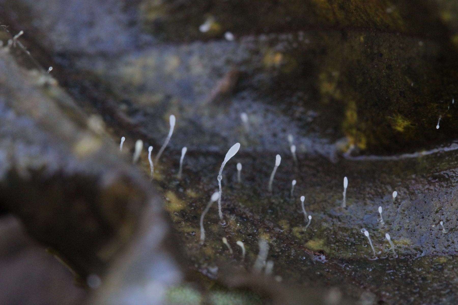 4. Ein Keulchen auf Erlenblättern. Vermutlich wieder mal etwas aus der Typhula setipes Gruppe