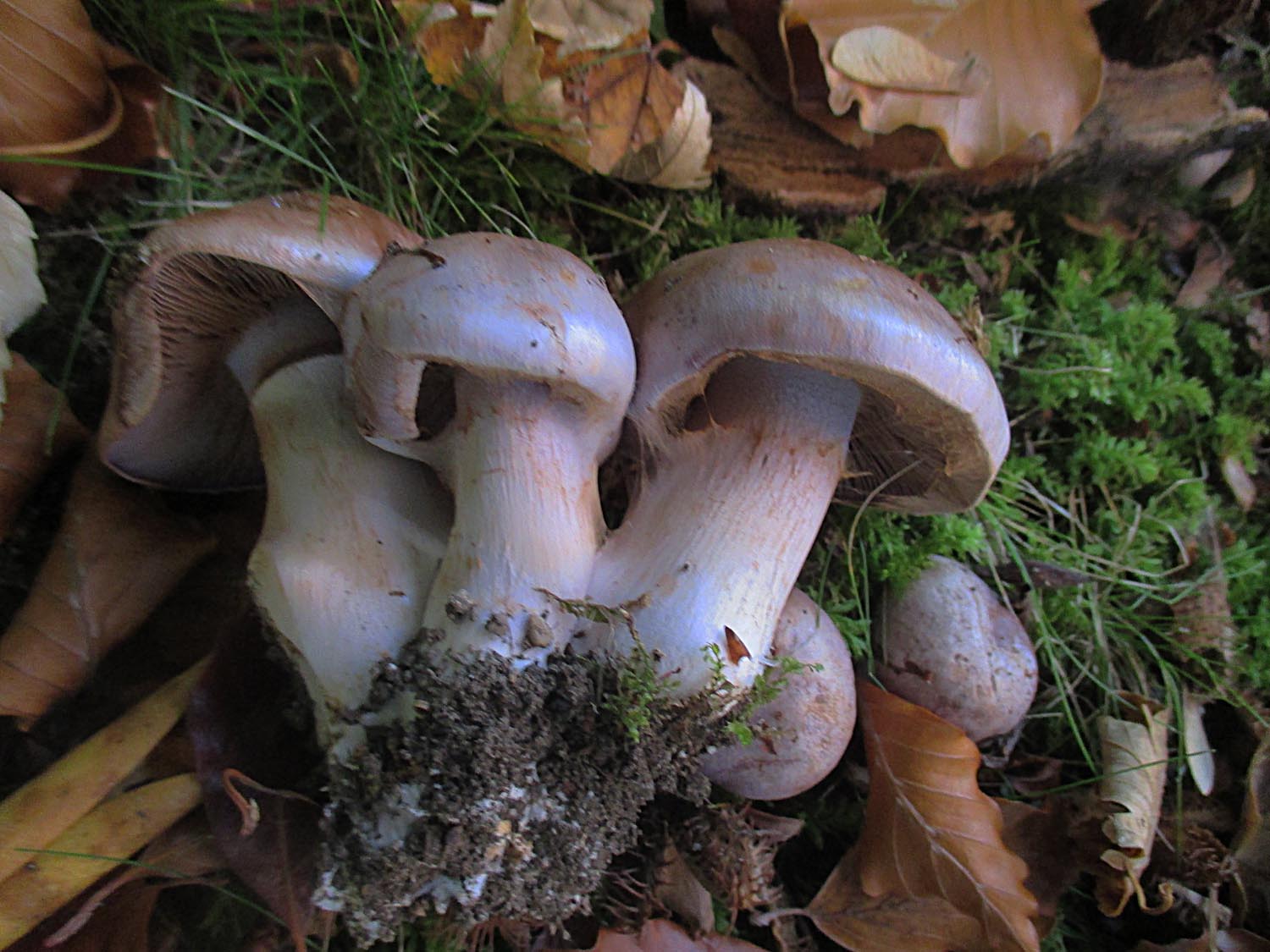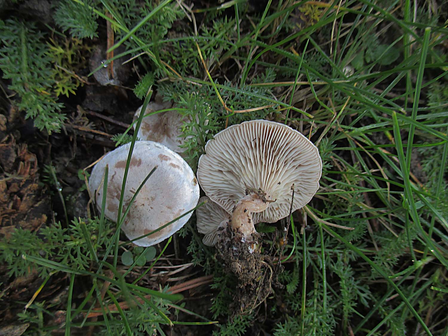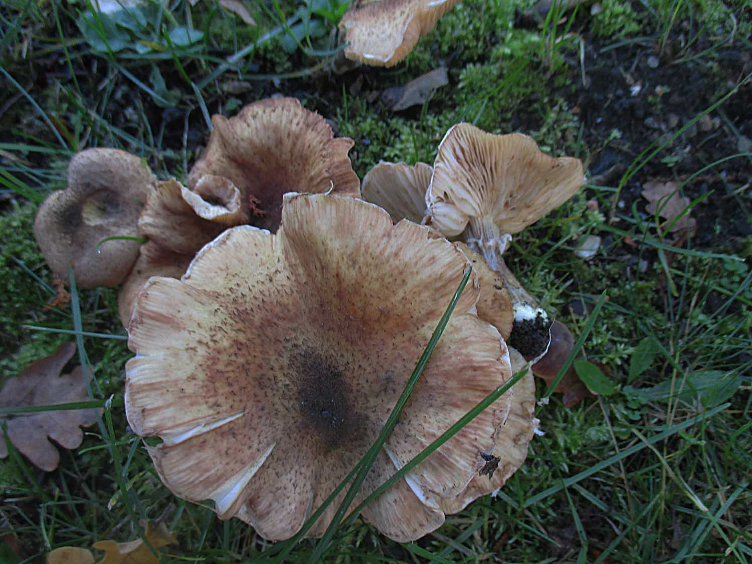 Bei ein paar Fichten waren diese, süßlich riechenden Trichterlinge zu sehen. Ich habe sie als Bleiweiße Trichterlinge (Clitocybe phyllophila) eingestuft ohne es beweisen zu können.