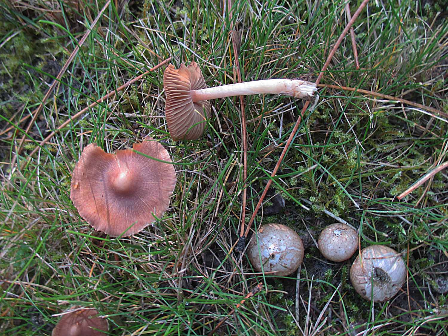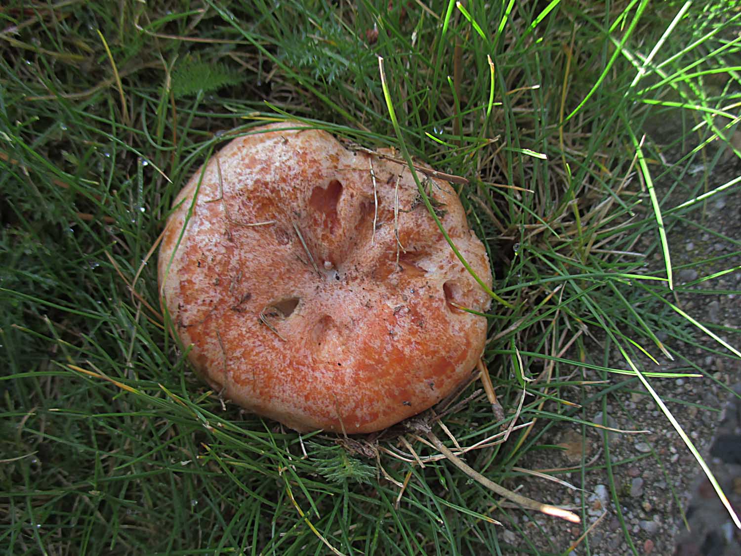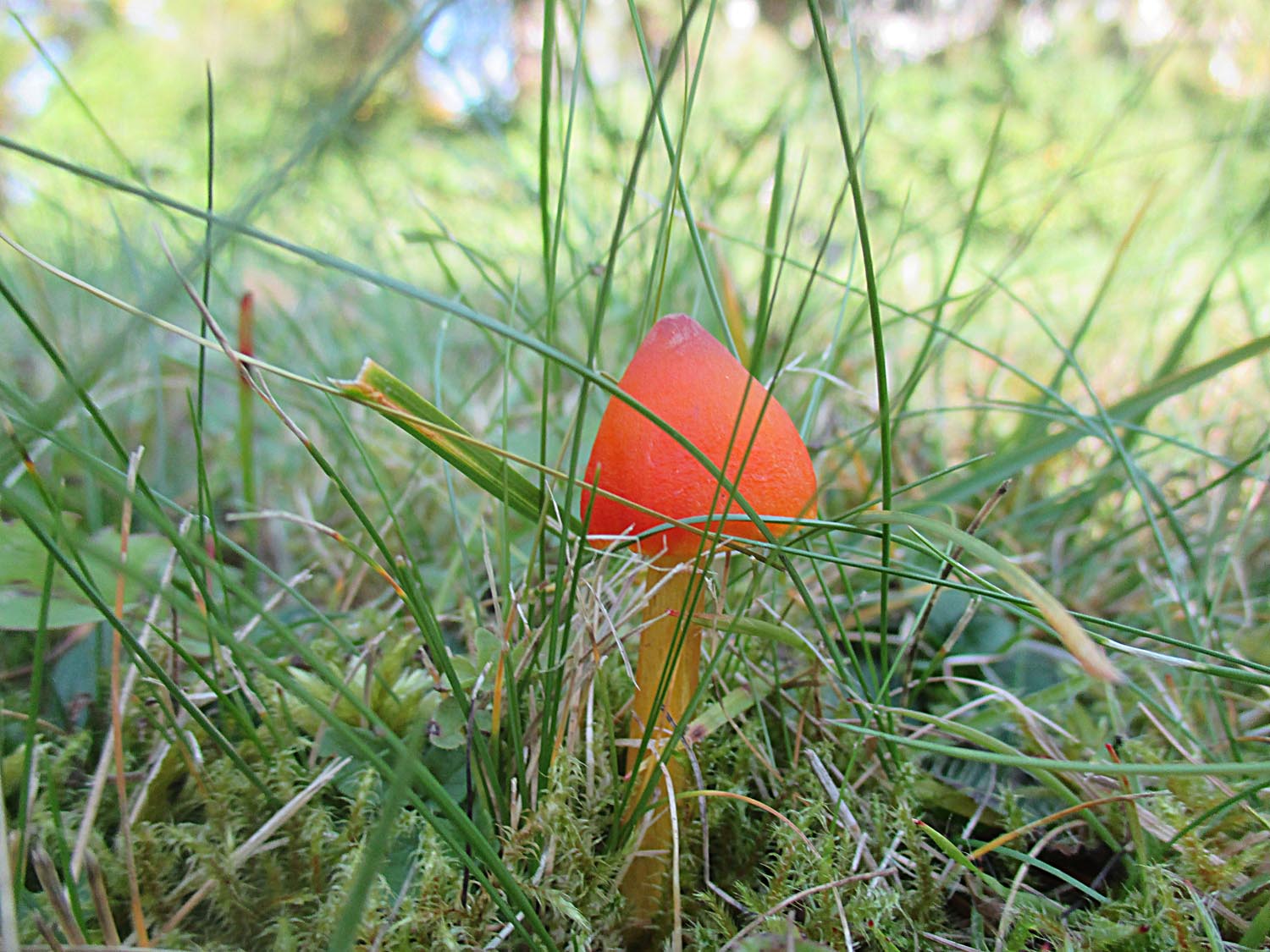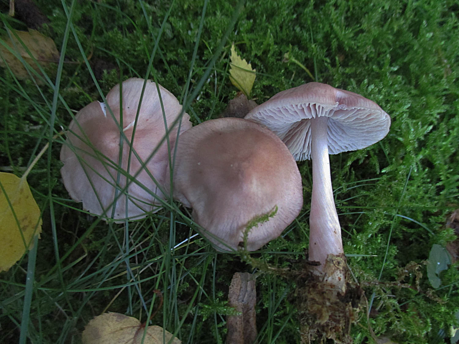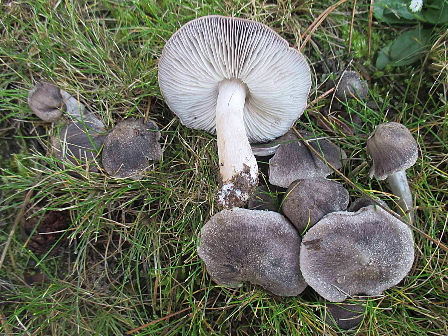 Sehr viele der Orangeellerlinge (Cuphophyllus pratensis) und Jungfernellerlinge (Cuphophyllus virgineus) hatten die Laubbläserattaken nicht überlebt.