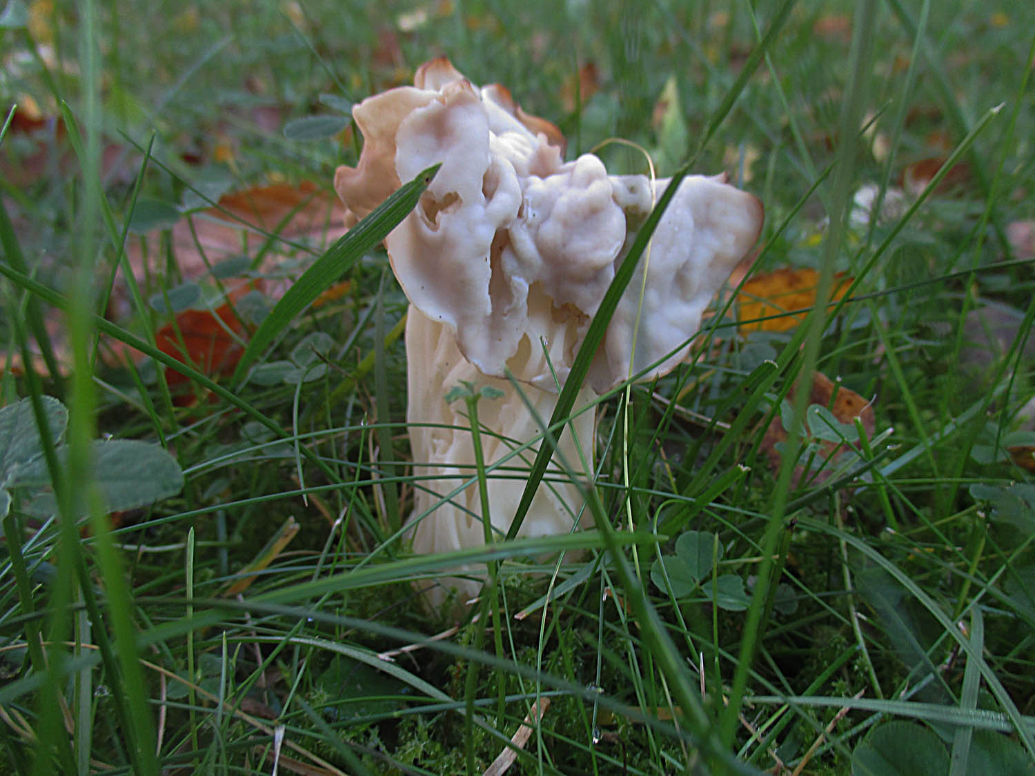Herbstlorcheln (Helvella crispa) und Schwärzende Saftlinge (Hygrocybe nigrescens) waren auch zugegen.