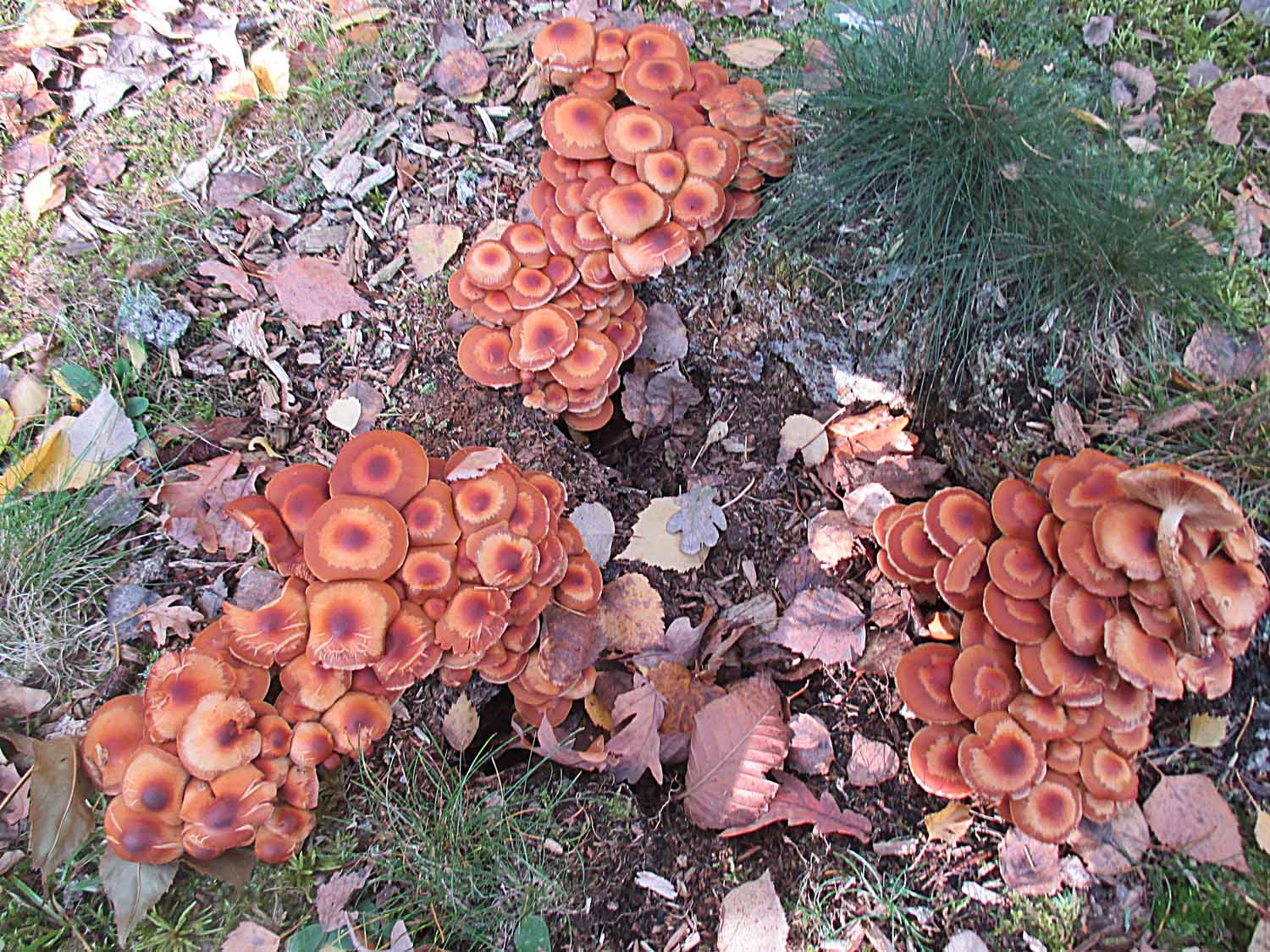 Neben einigen Schwarzpunktierten Schneckingen (Hygrophorus pustulatus) gab es noch einen Stamm mit leckeren Stockschwämmchen (Kuehneromyces mutabilis).