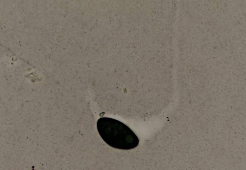 Ascus 8sporig und biseriat, ca 150µ x 55µ