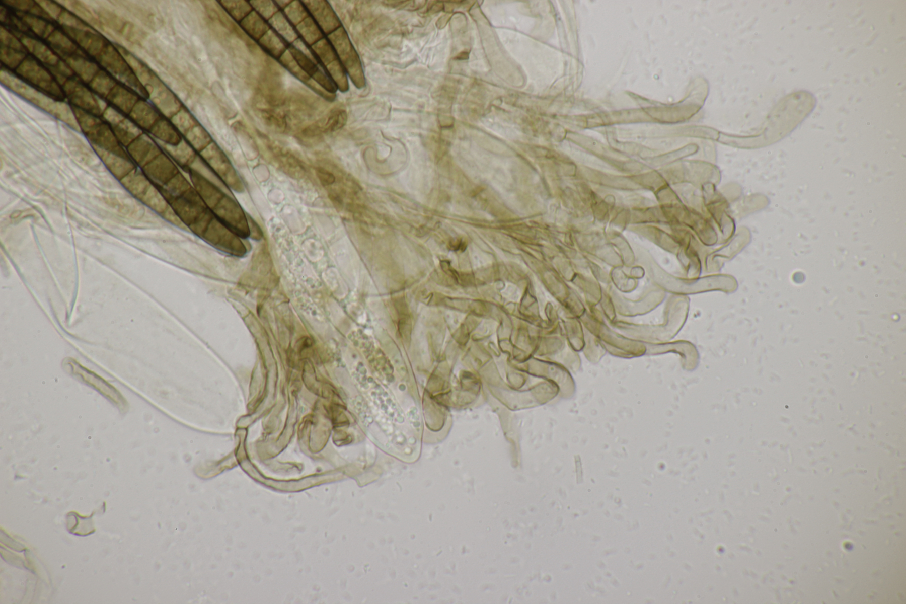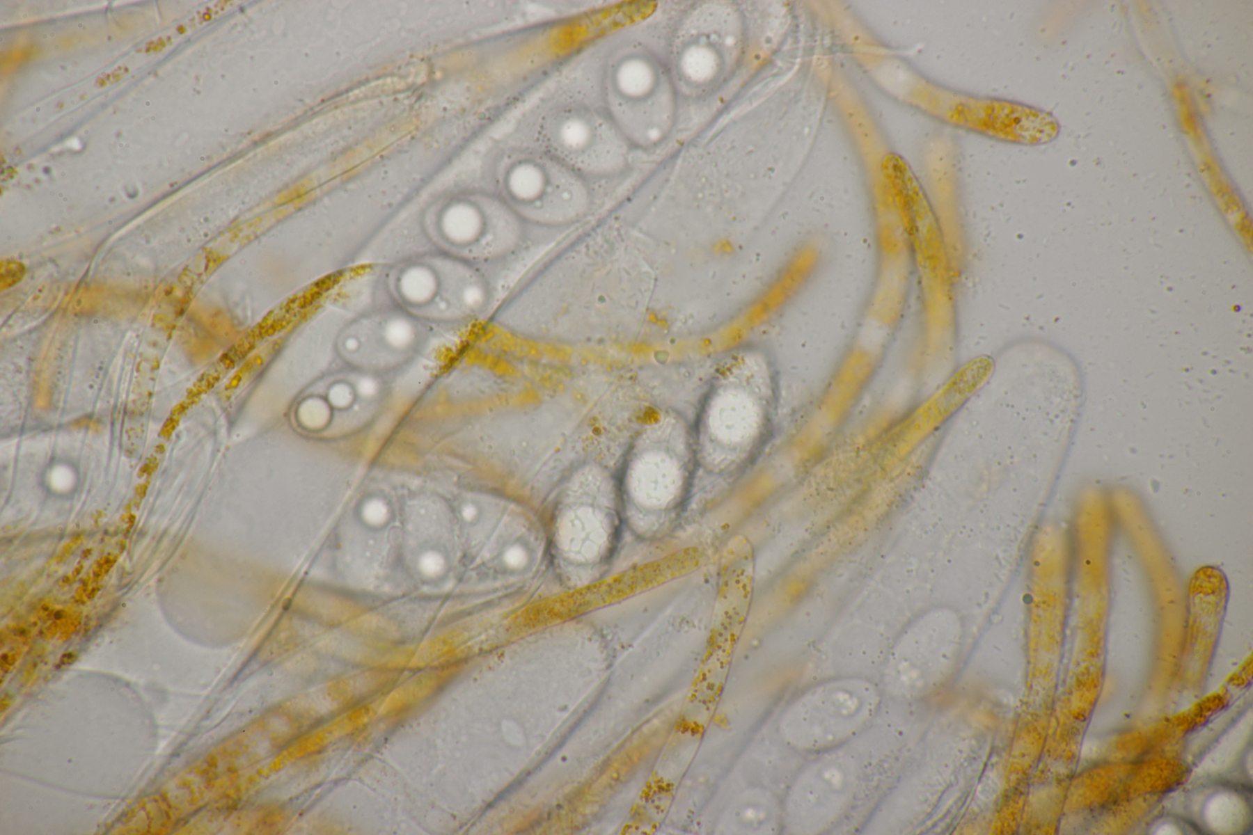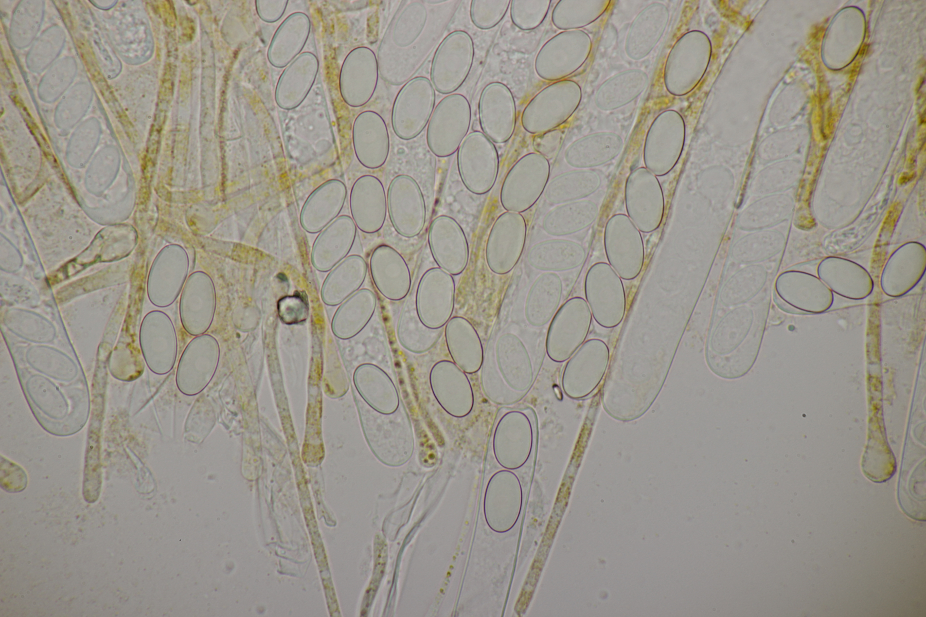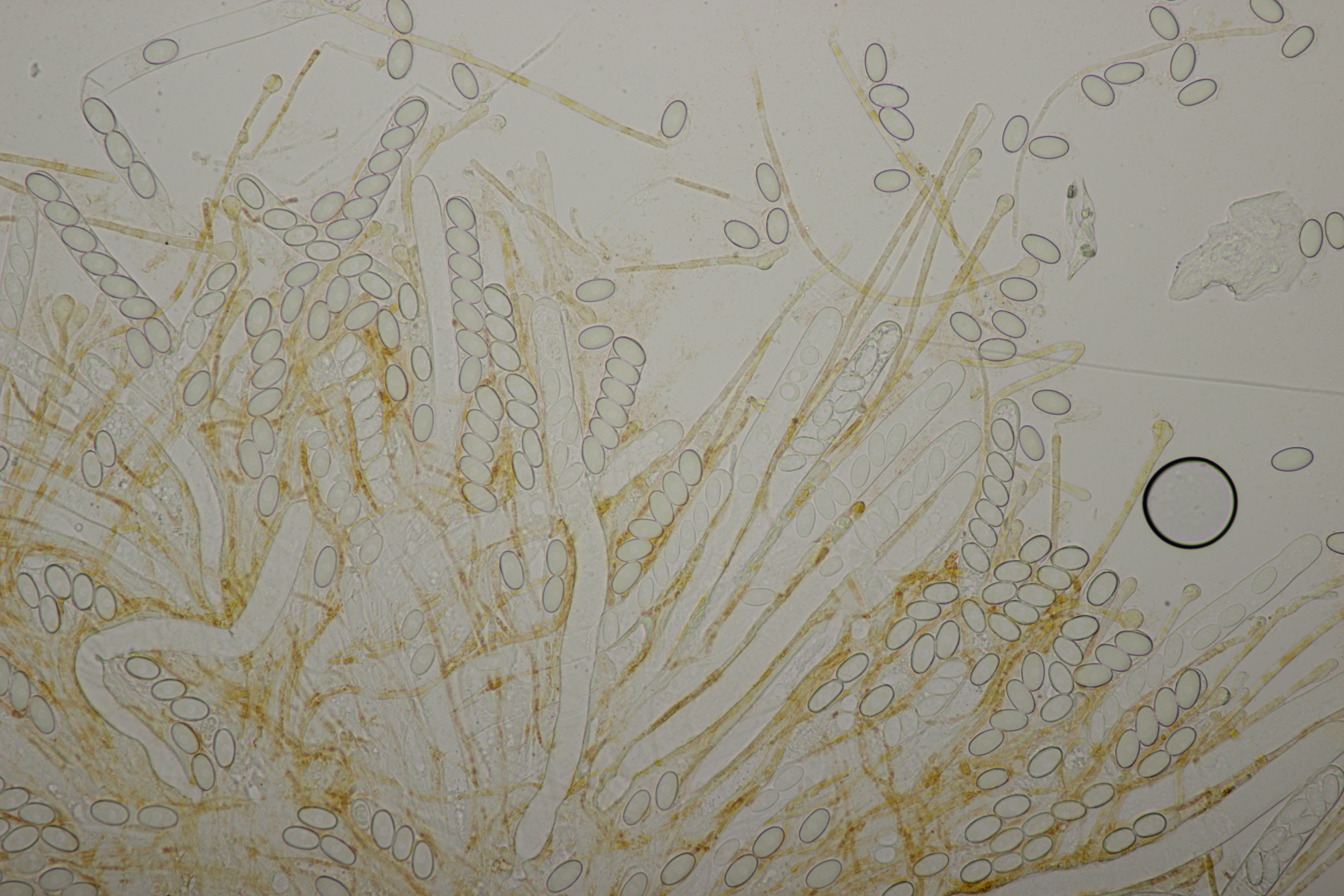 Das man auch nach 20 Jahren und mehr als 300 Exkursionen mit Nectriopsis lecanodes eine für das Gebiet neue Art dabei hatte, rundet das Ganze wunderschön ab. Neu für das Gebiet war auch noch Melastizia cornubiensis. Kein Makrofoto weil ich zunächst dachte schon wieder Neottiella und dann war der Fruchtkörper schon "zerlegt". Immerhin reichte es noch für die schönen Sporen.