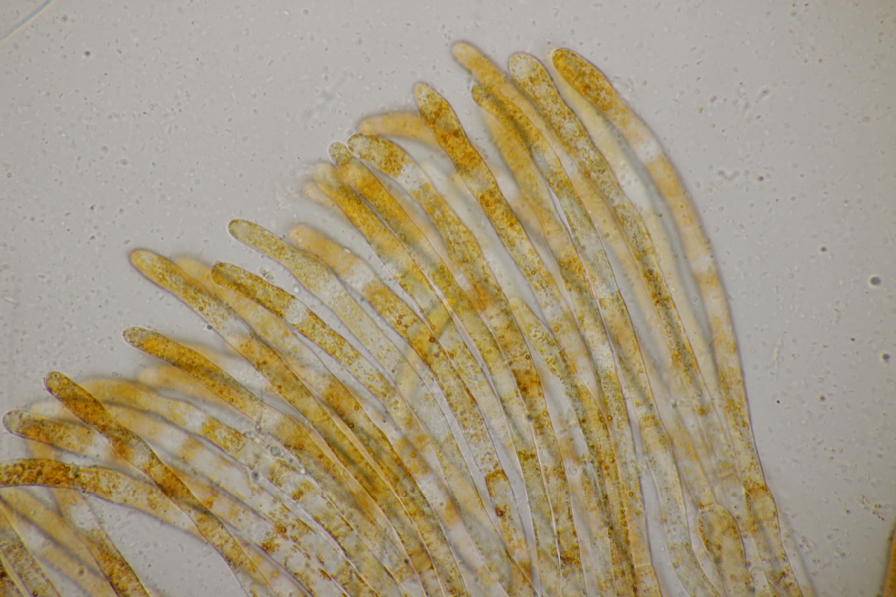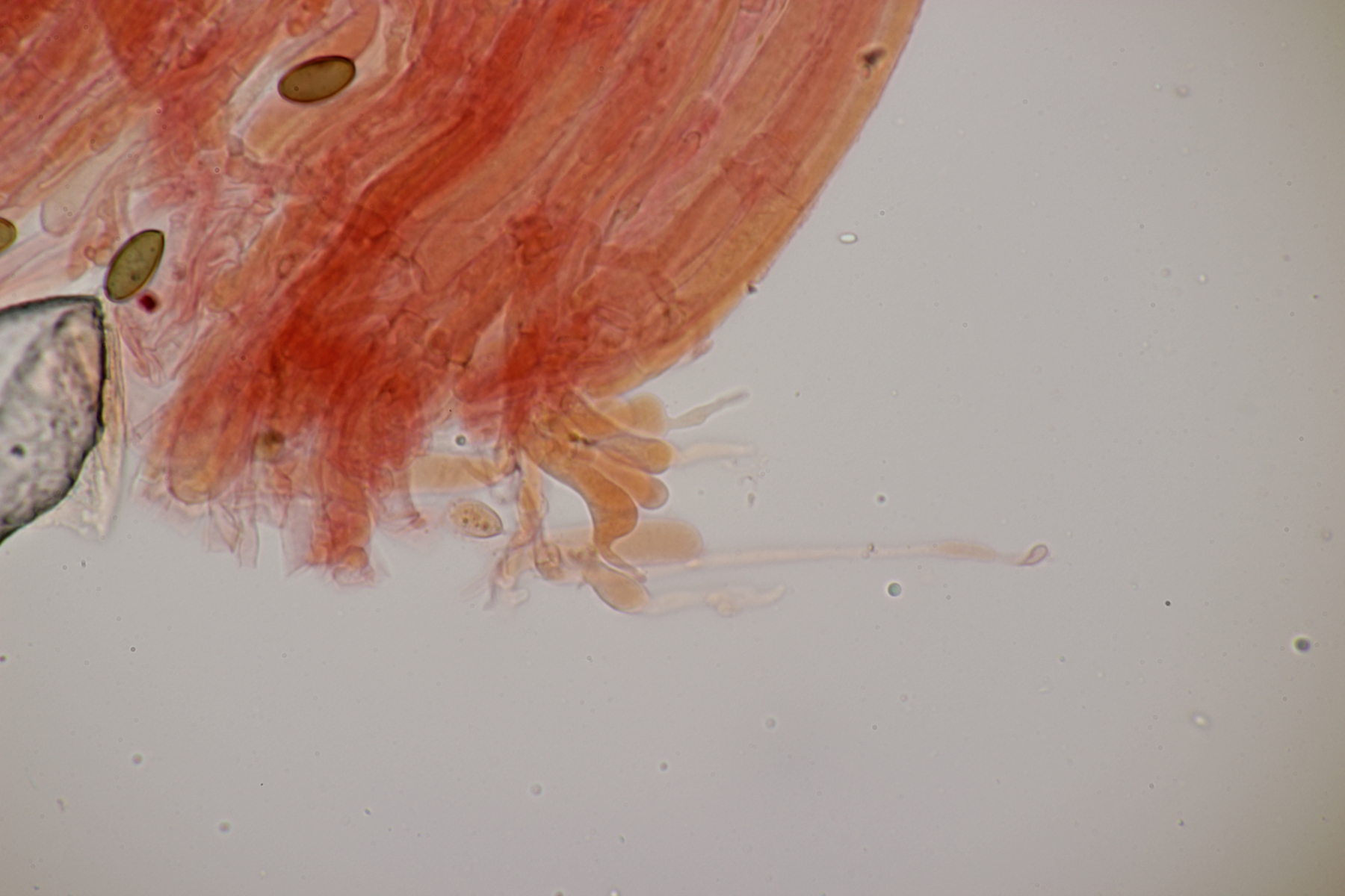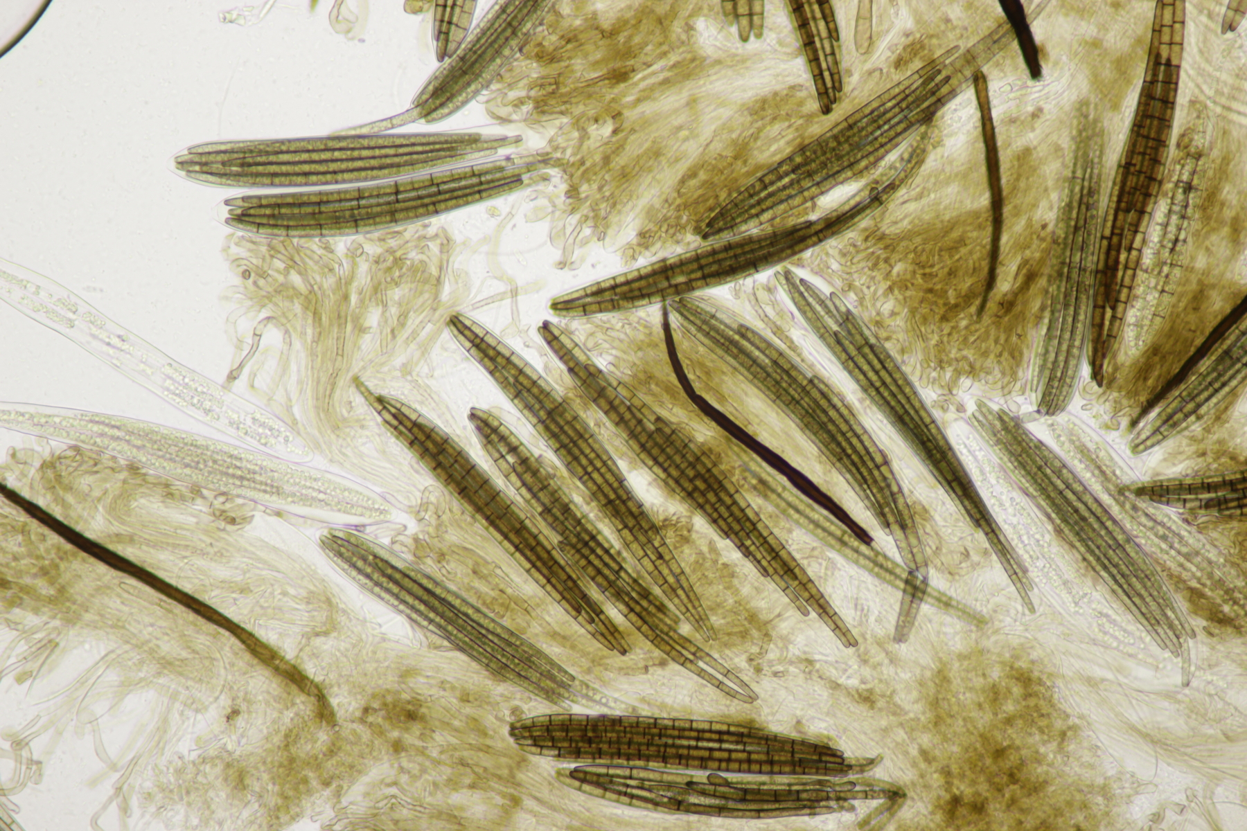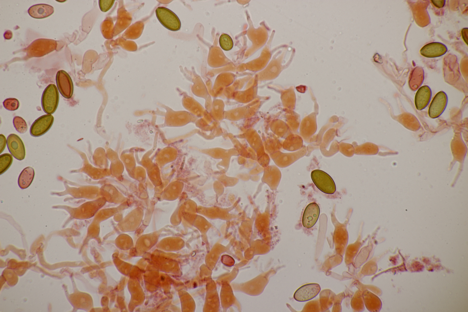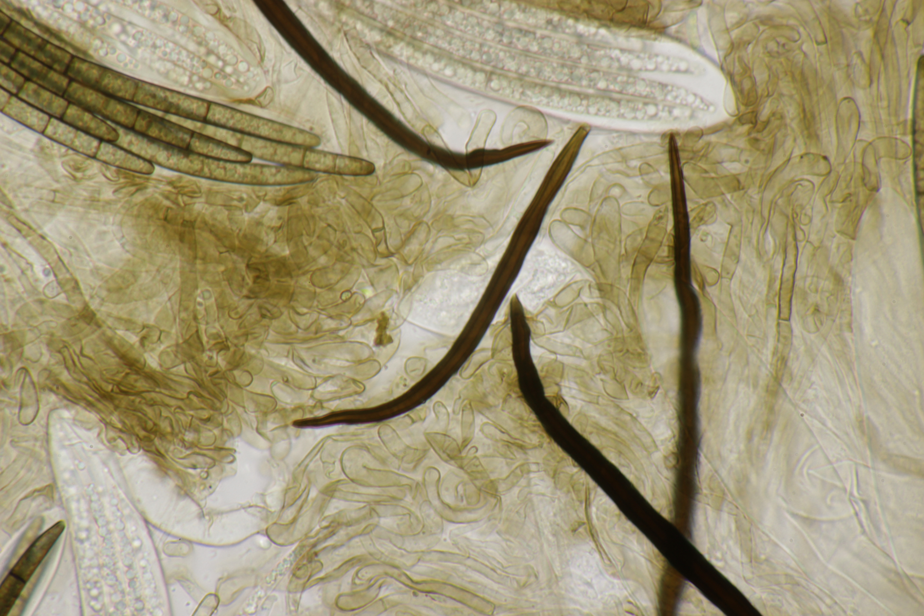 Das man auch nach 20 Jahren und mehr als 300 Exkursionen mit Nectriopsis lecanodes eine für das Gebiet neue Art dabei hatte, rundet das Ganze wunderschön ab. Neu für das Gebiet war auch noch Melastizia cornubiensis. Kein Makrofoto weil ich zunächst dachte schon wieder Neottiella und dann war der Fruchtkörper schon "zerlegt". Immerhin reichte es noch für die schönen Sporen.