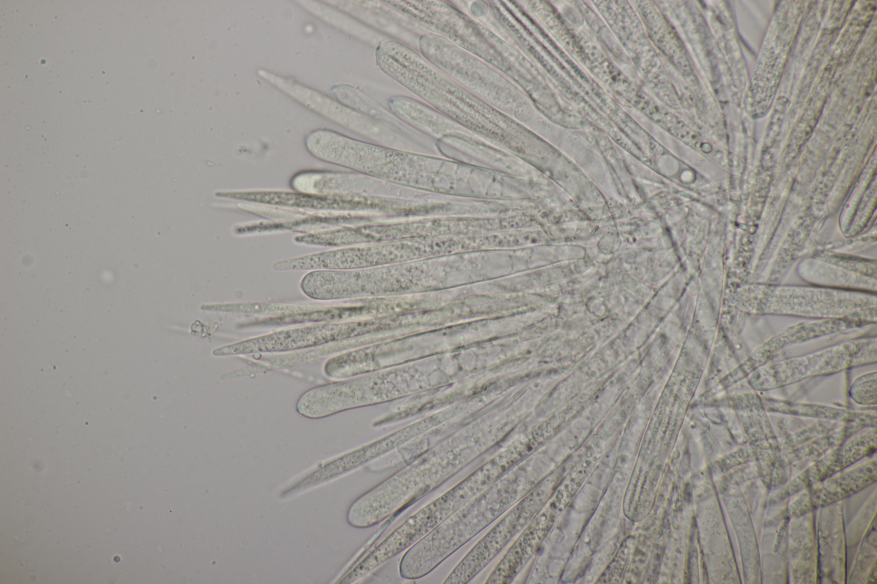 Das man auch nach 20 Jahren und mehr als 300 Exkursionen mit Nectriopsis lecanodes eine für das Gebiet neue Art dabei hatte, rundet das Ganze wunderschön ab. Neu für das Gebiet war auch noch Melastizia cornubiensis. Kein Makrofoto weil ich zunächst dachte schon wieder Neottiella und dann war der Fruchtkörper schon "zerlegt". Immerhin reichte es noch für die schönen Sporen.