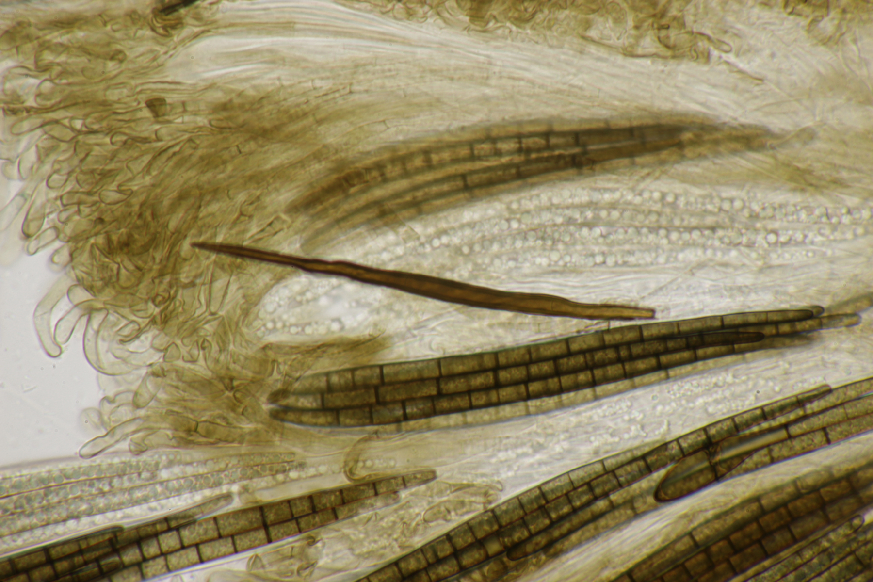 Das man auch nach 20 Jahren und mehr als 300 Exkursionen mit Nectriopsis lecanodes eine für das Gebiet neue Art dabei hatte, rundet das Ganze wunderschön ab. Neu für das Gebiet war auch noch Melastizia cornubiensis. Kein Makrofoto weil ich zunächst dachte schon wieder Neottiella und dann war der Fruchtkörper schon "zerlegt". Immerhin reichte es noch für die schönen Sporen.