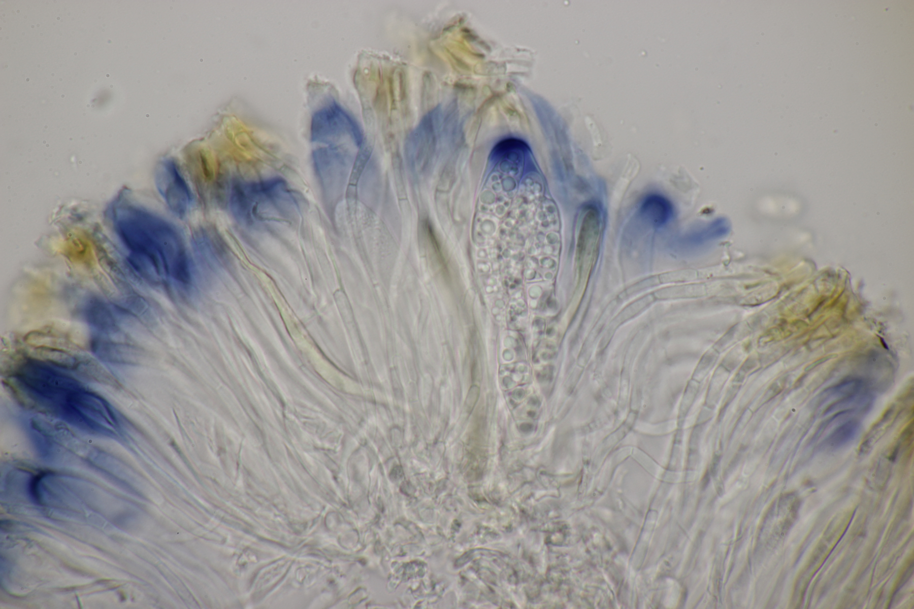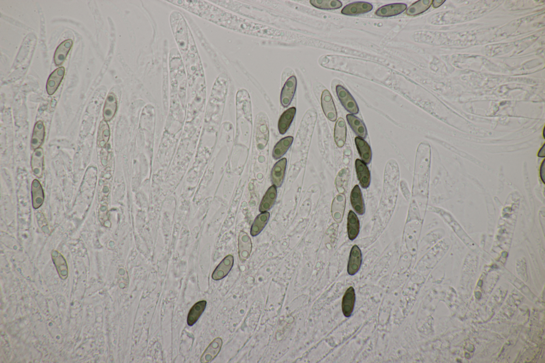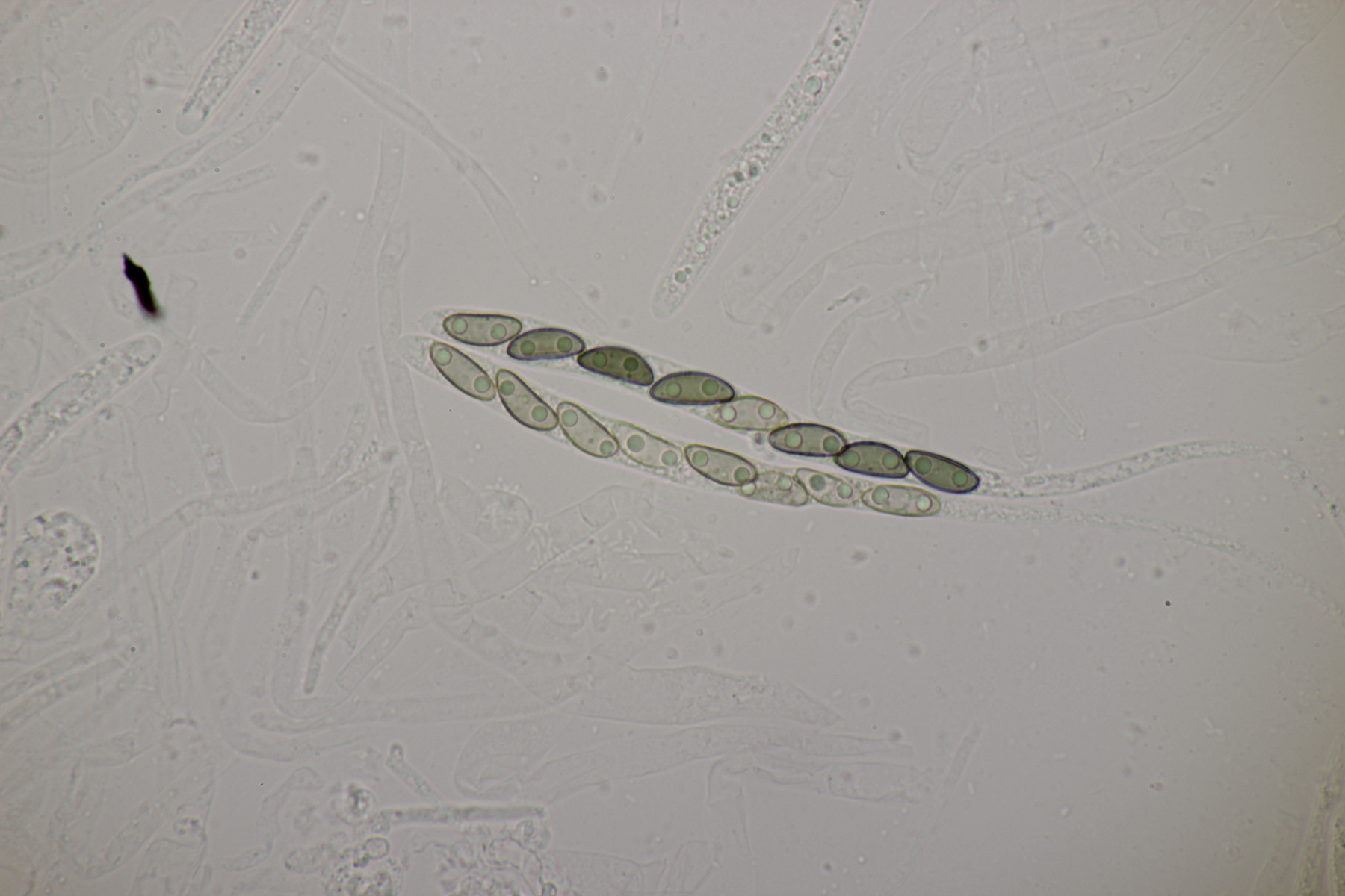 2. Pseudombrophila bulbifera. Diesmal auch mit ausreichend großen Sporen von (12.1-13.3) µm