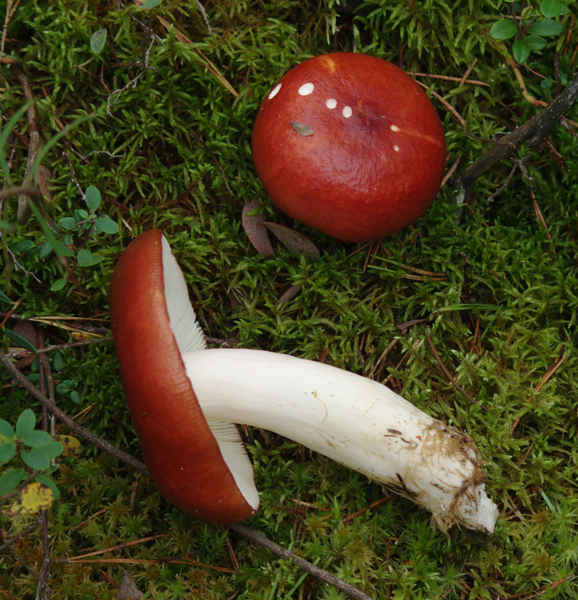 • Hallo Kerl, vielen Dank, die Speitäublinge hatte ich noch gar nicht auf dem Schirm, dann könnte dieses nur wenige Minuten später gemachte Bild mit einem glänzenden roten Täubling womöglich R. emetica sein? Regen gab es nicht.
