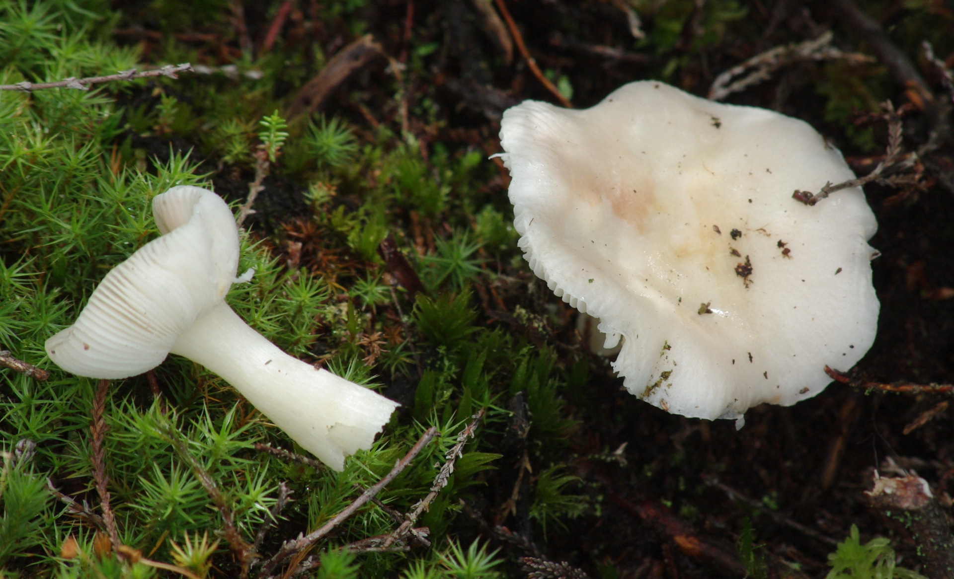 Sicherlich ein Täubling aus der Emetica-Verwandschaft. R. betularum (wenn Birke der Partner ist) blasst fast immer so stark aus. Ich hatte aber auch schon so blasse Exemplare in reinem Fichtenwald ohne Birke, die ich als R. emetica s.str. bestimmt habe und ebenfalls blasse Täublinge mit grauenden Stielen, die an R. emetica var. griseascens erinnerten aber mikroskopisch nicht ganz passten.