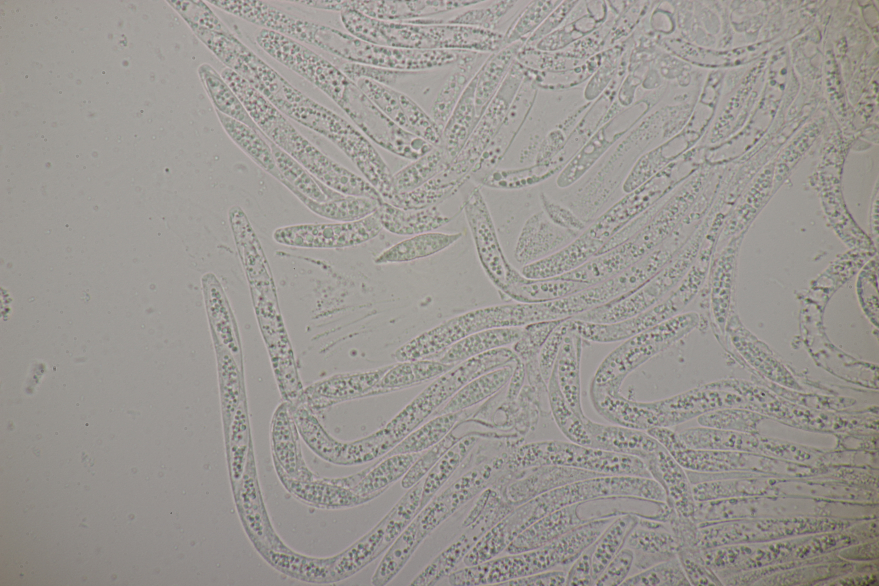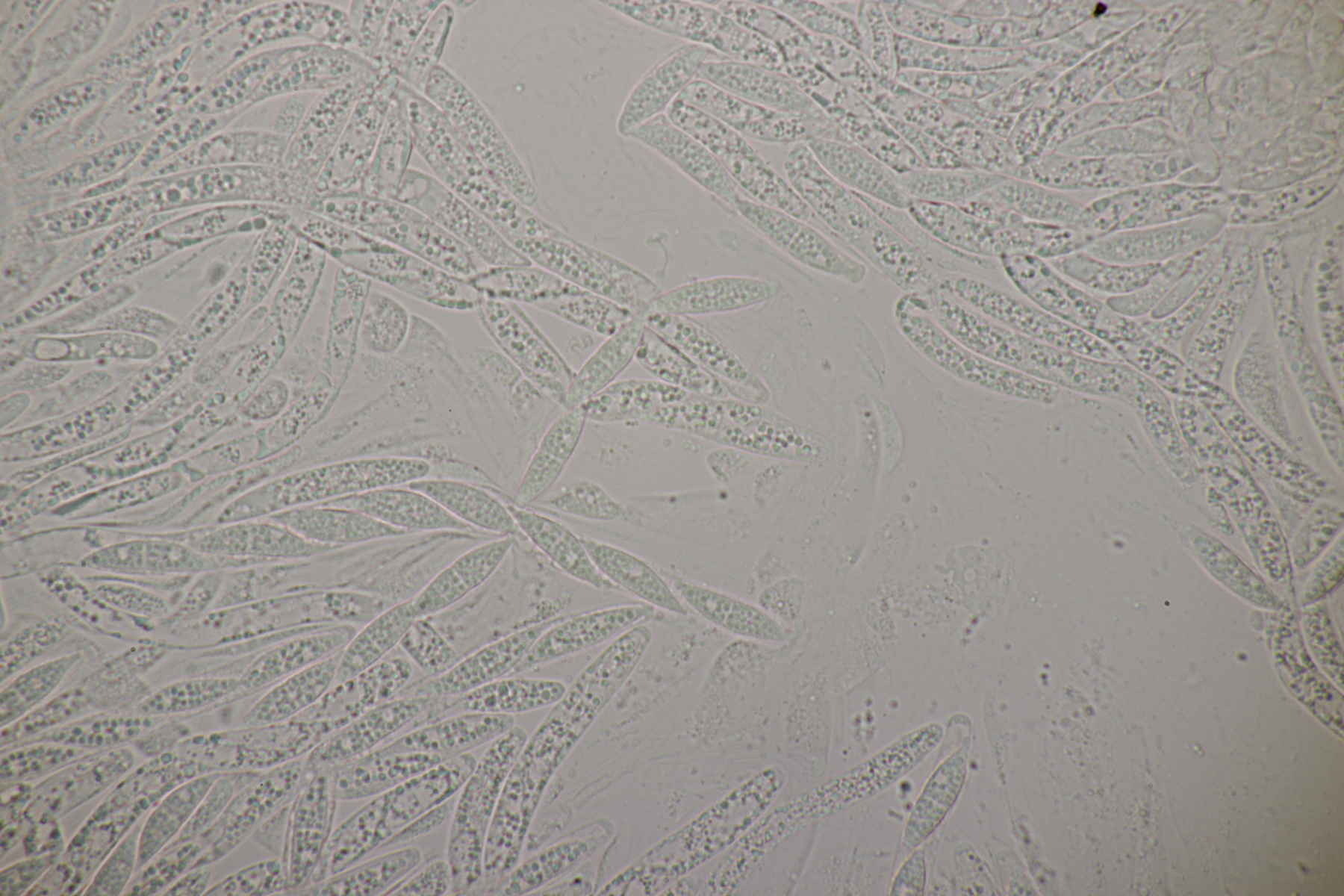 7. Eine Orbilia. Also muß man jetzt eigentlich nur noch Zottos Monographie aus dem Schrank holen und zack hat der Pilz einen Namen... Wenn es nur so einfach wäre! Ich scheitere ehrlich gesagt schon daran zu erkennen, wie genau die winzigen Sporen nun geformt sind.