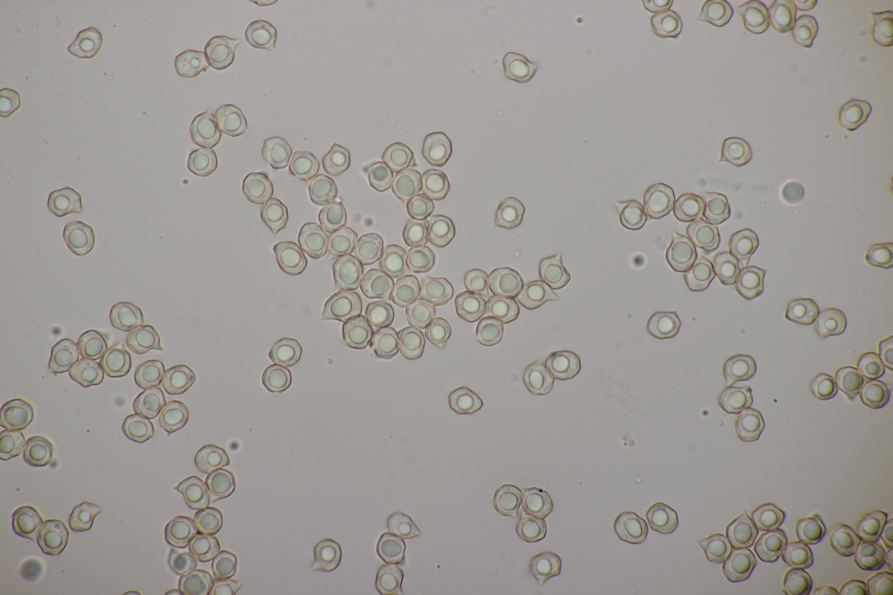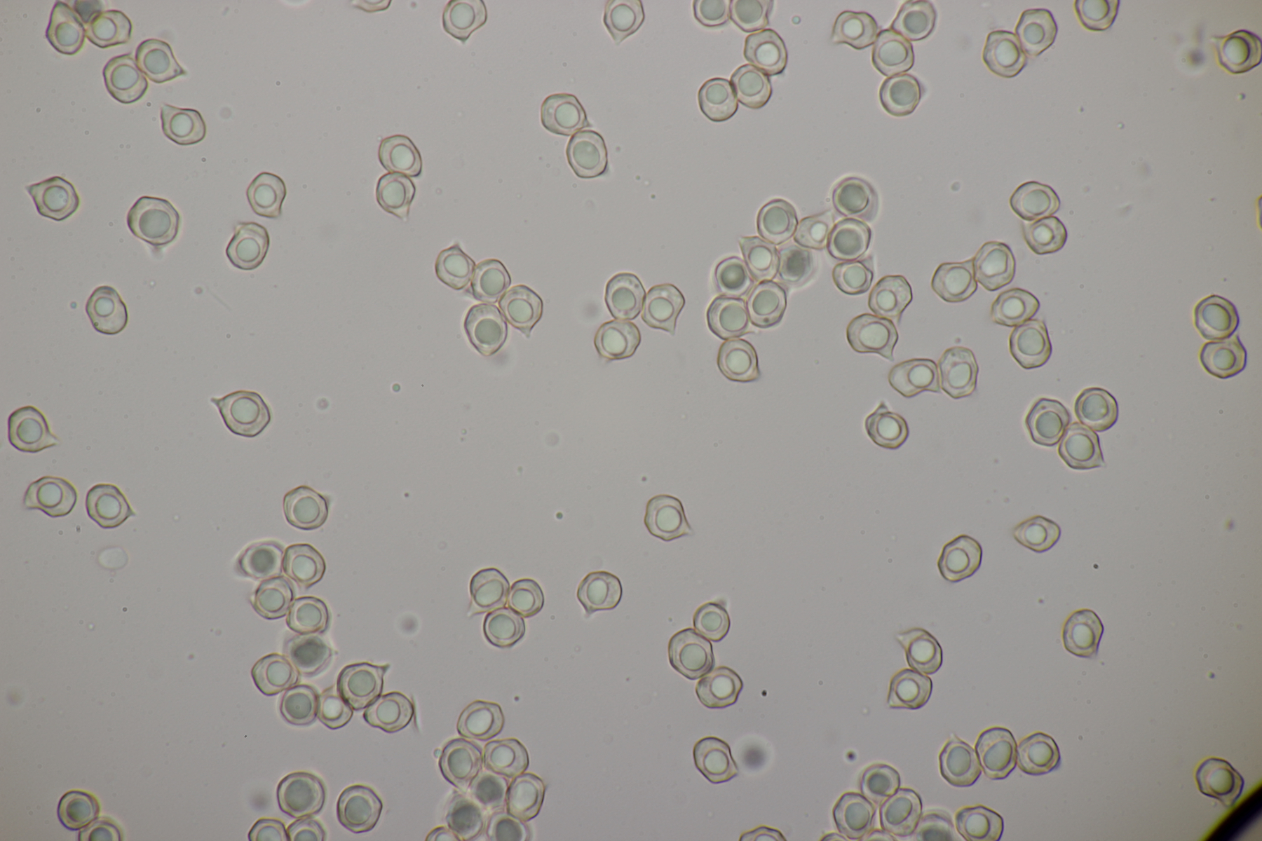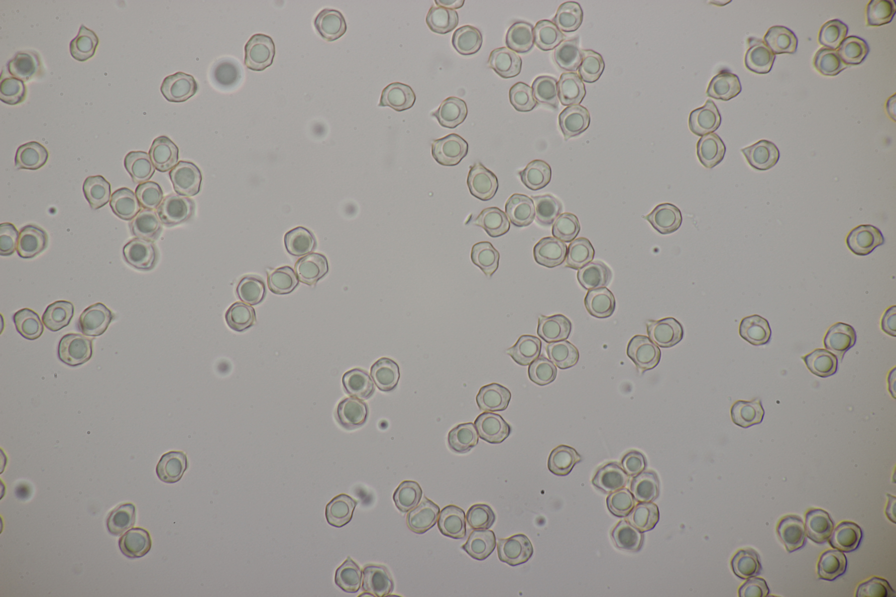 8. Auch im Dezember wachsen noch Entolomas. Diese hier hat keine Schnallen, 4-sporige Basidien, keine Zystiden und Sporen von (8.4+-0.5) µm x (6.5+-0.5) µm, Q=1.3+-0.1 bzw. (7.5-9.7) µm x (5.9-7.6) µm, Q=1.2-1.5. Das Pigment der Huthaut scheint interzellulär-inkrustierend zu sein. Die Fruchtkörper haben einen deutlichen Mehlgeruch. Die Lamellen laufen bei einigen Exemplaren deutlich nabelingsartig herab. Die Stiele sind glatt. Die Huthaut ist schwach hygrophan und glatt.
