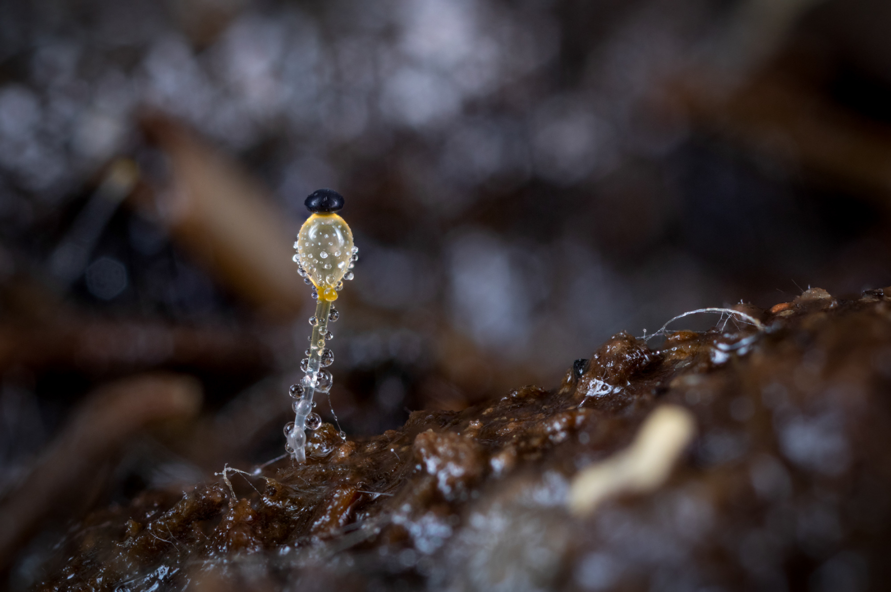 in der Feuchtkammer hat sich auf Ziegendung neben anderen interessanten Arten auch der Pillenwerfer (Pilobolus spec.) eingenistet.