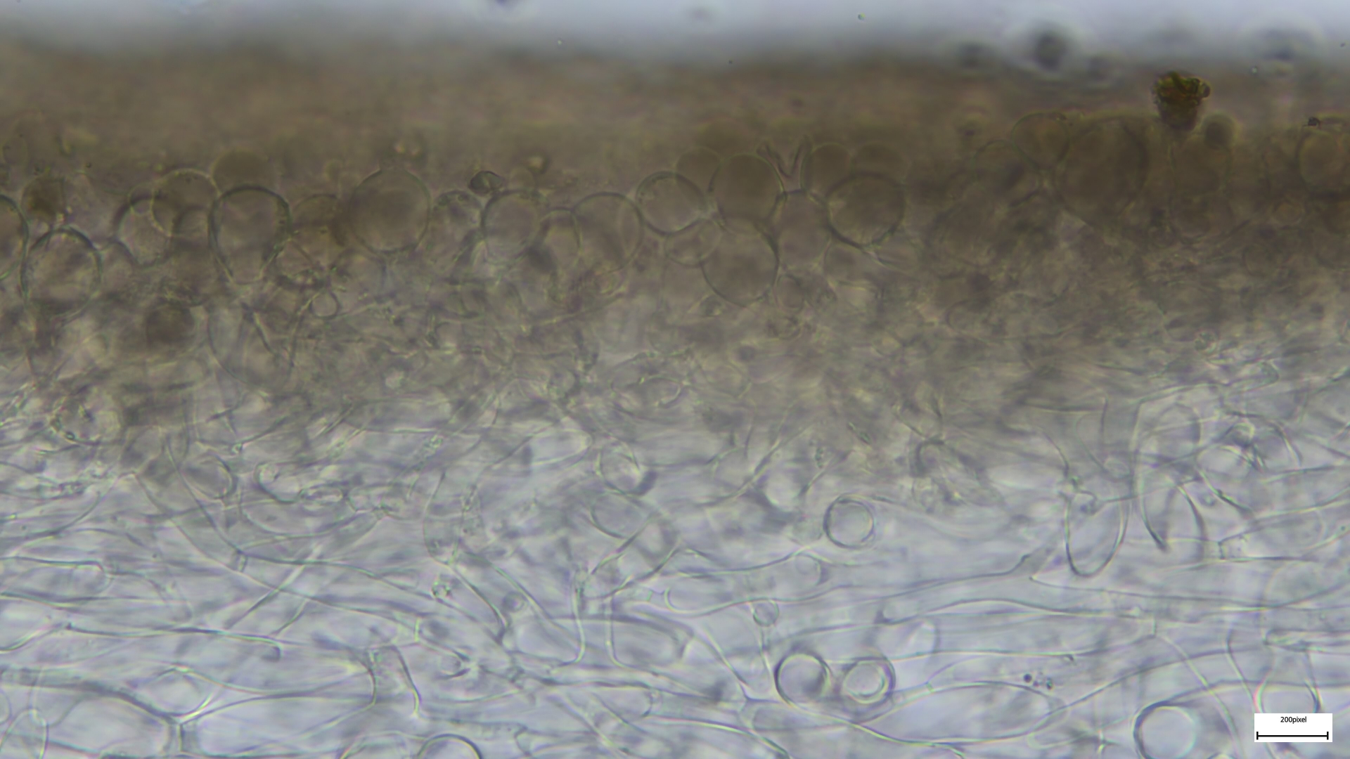 Bei folgendem FiZaRü sollte es sich nach meinem dafürhalten um Stephanocystitis handeln. Nach Ludwig sollte der jedoch in eher nicht in den Wintermonaten vorkommen und bei Kiefer. Dieser stand zwischen Fichten und Douglasien als Einzelexemplar. Aber die bekränzten Cystiden lassen aus meiner Sicht keinen anderen Schluss zu oder ...