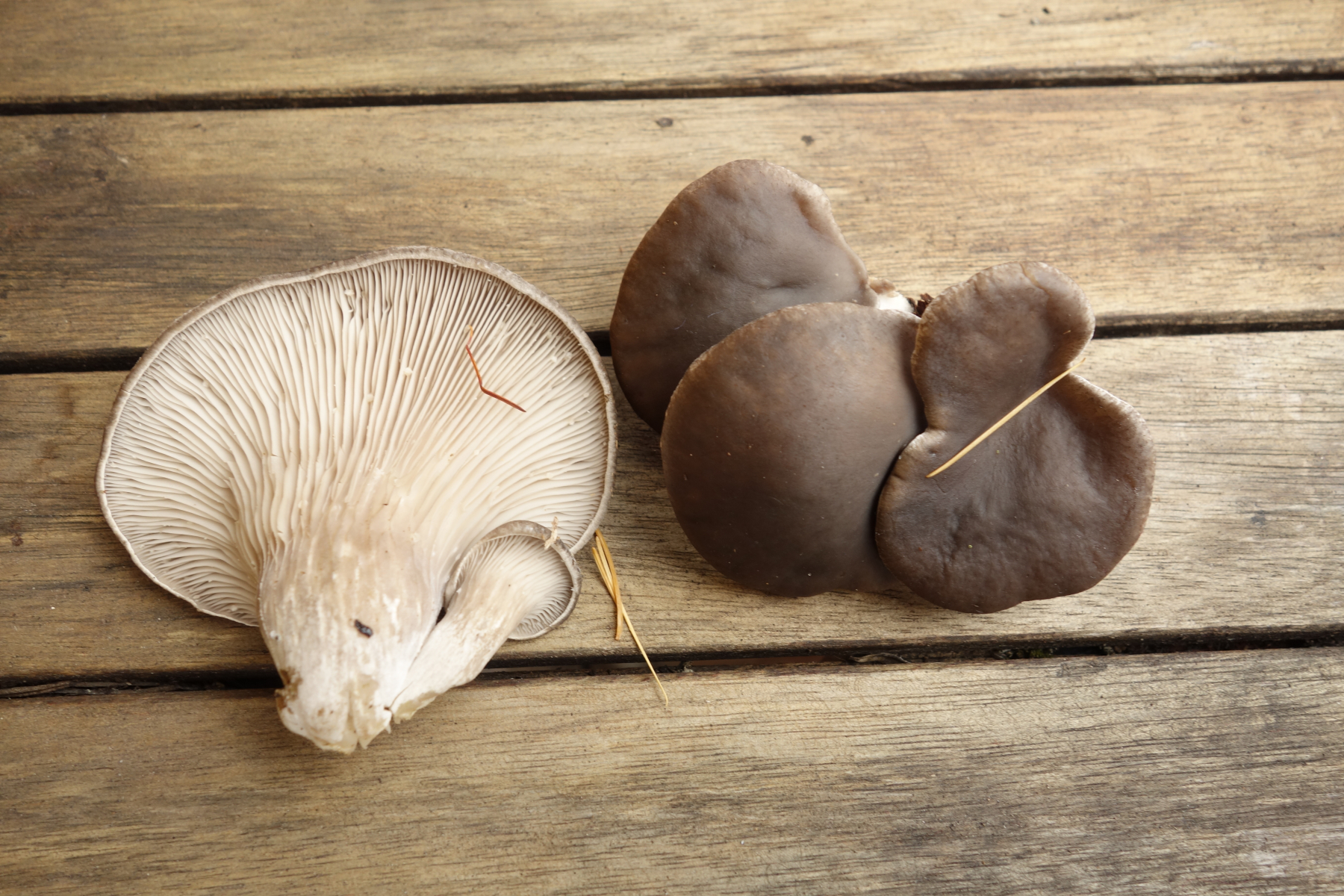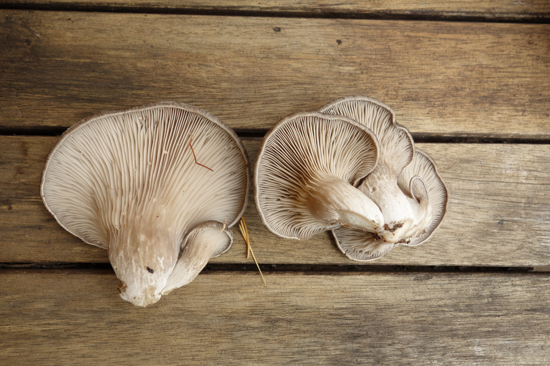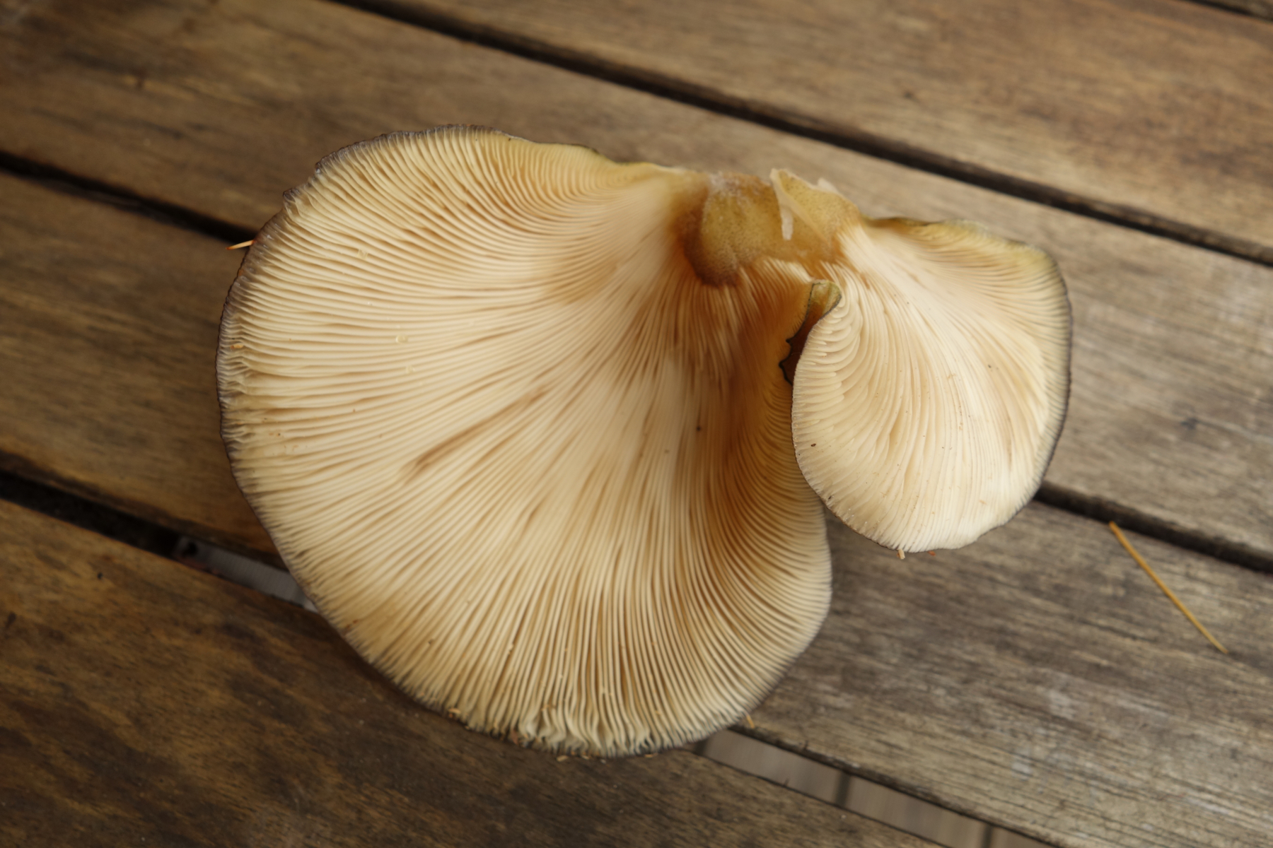 Ich dachte an einen Austernseitling, hatte die Lamellen aber irgendwie heller im Kopf. Was meint ihr?