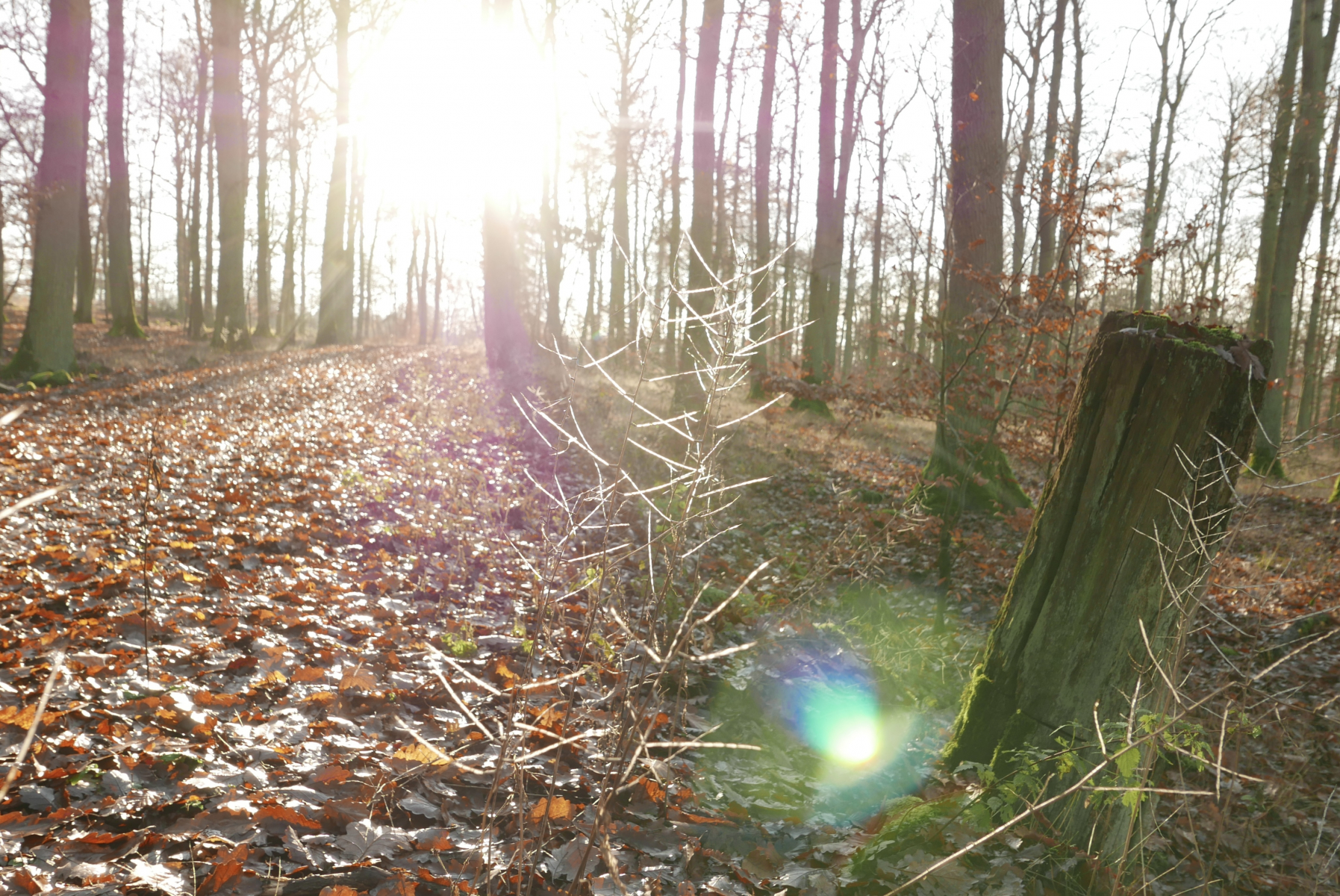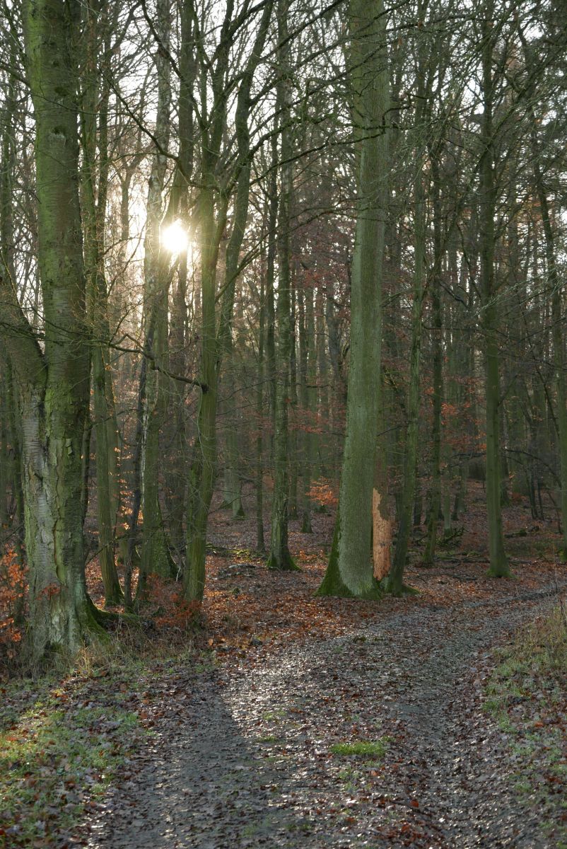 Bunte Farbtupfer erhellen den dezembergrauen Wald