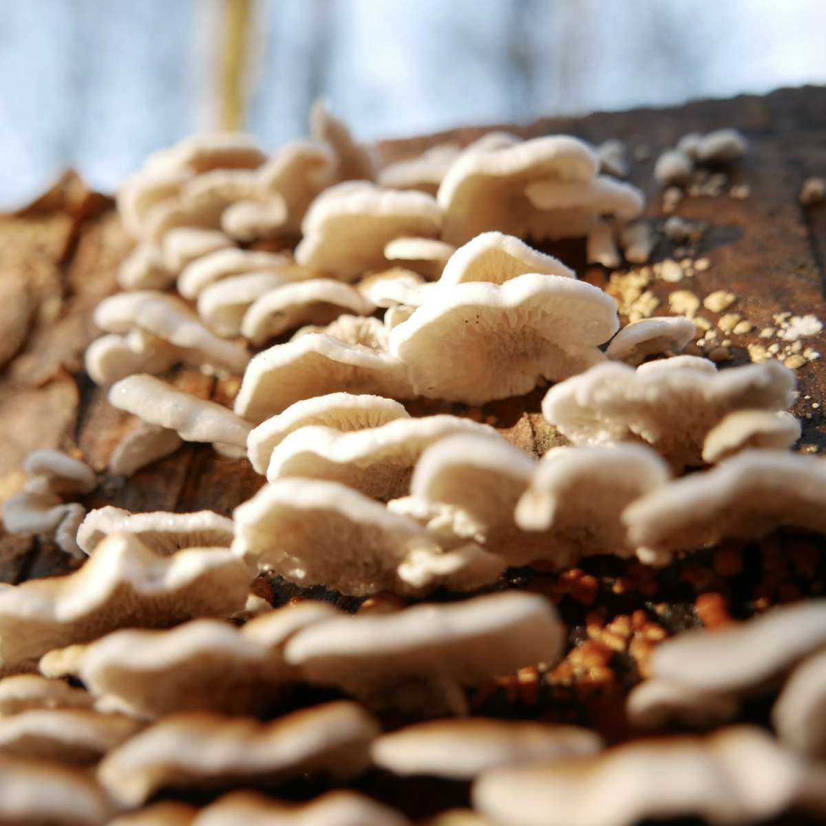 Feinste Spitze, von den Mycelien aus totem Holz gefertigt