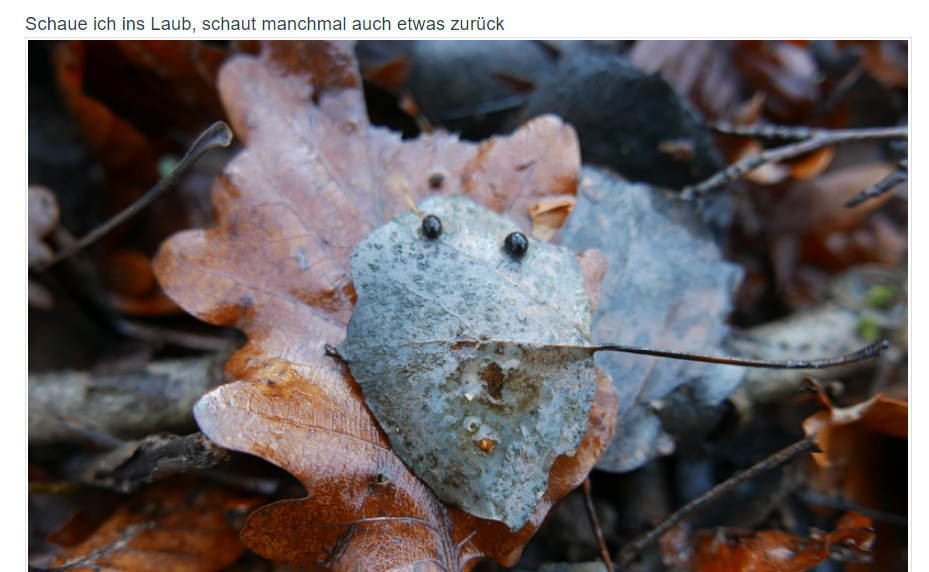 Schaue ich ins Laub, schaut manchmal auch etwas zurück
