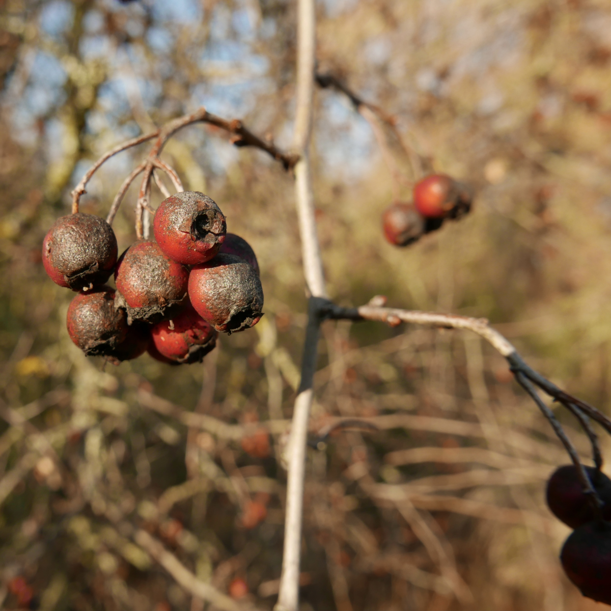 Bunte Farbtupfer erhellen den dezembergrauen Wald