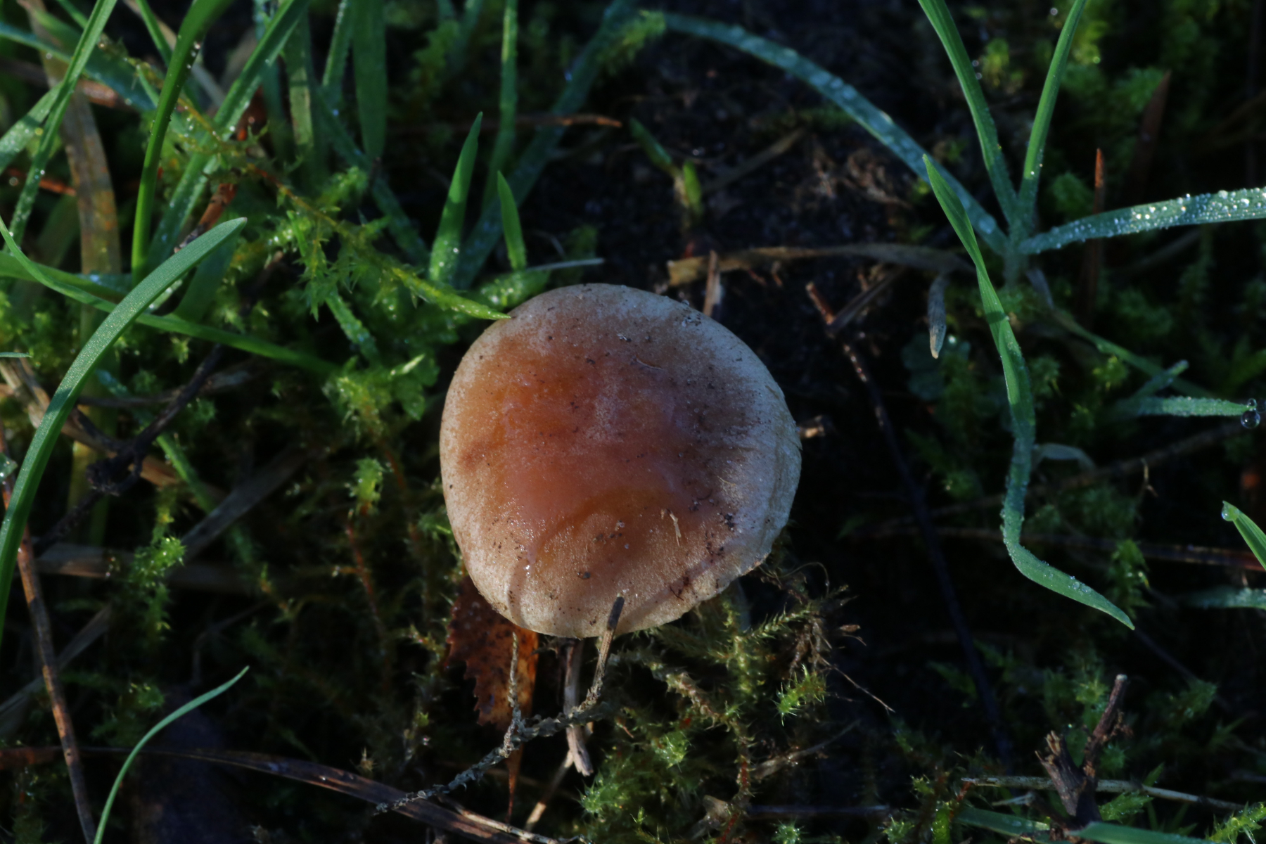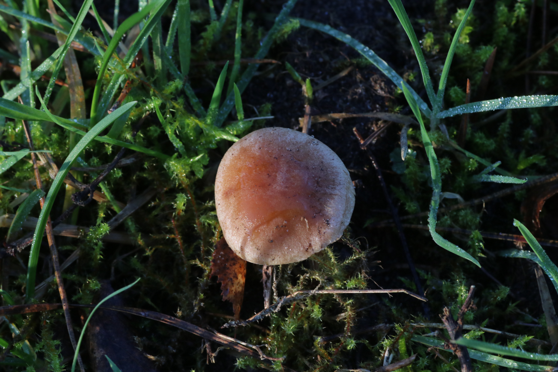Er wuchs gesellig mit 6 Fruchtkörpern auf einer Gras-, Moosschicht. Die Bäume auf der gegenüberliegenden Seite waren Eichen, Kiefern und Birken. (Kann sein, dass mir da einiges entgangen ist) Ich meine, dass der Pilz leicht rettichartig riecht.