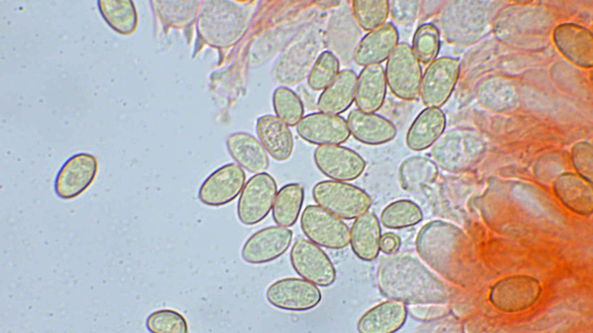 Die Sporen maßen von 8-9,8X5-5,6