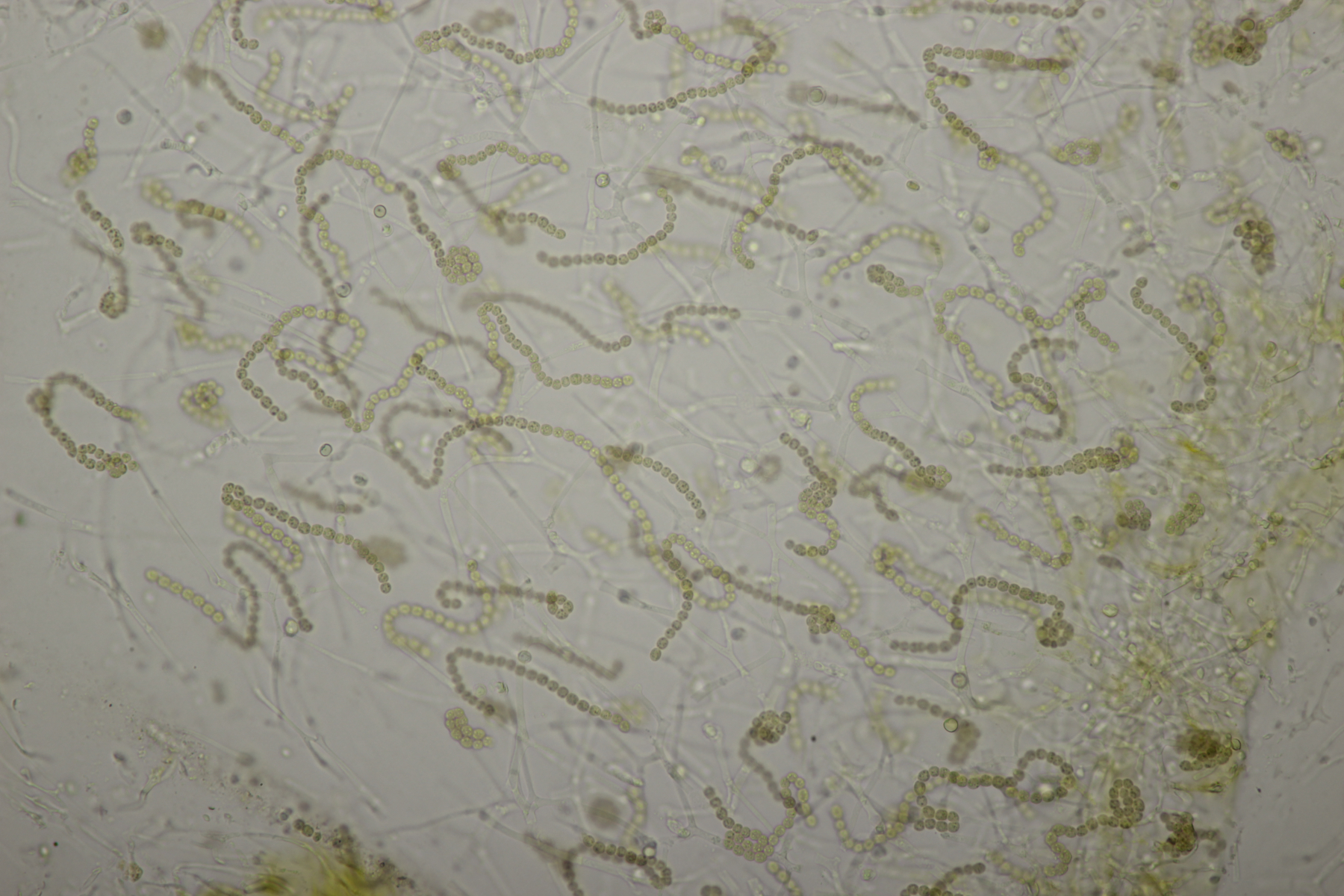 Und hier noch ein paar Mikrofotos der Cyanobakterien vom Fund aus dem Landschaftspark, die ich letzte Woche noch nicht gezeigt hatte.