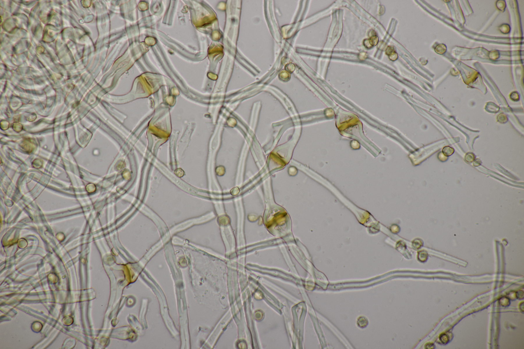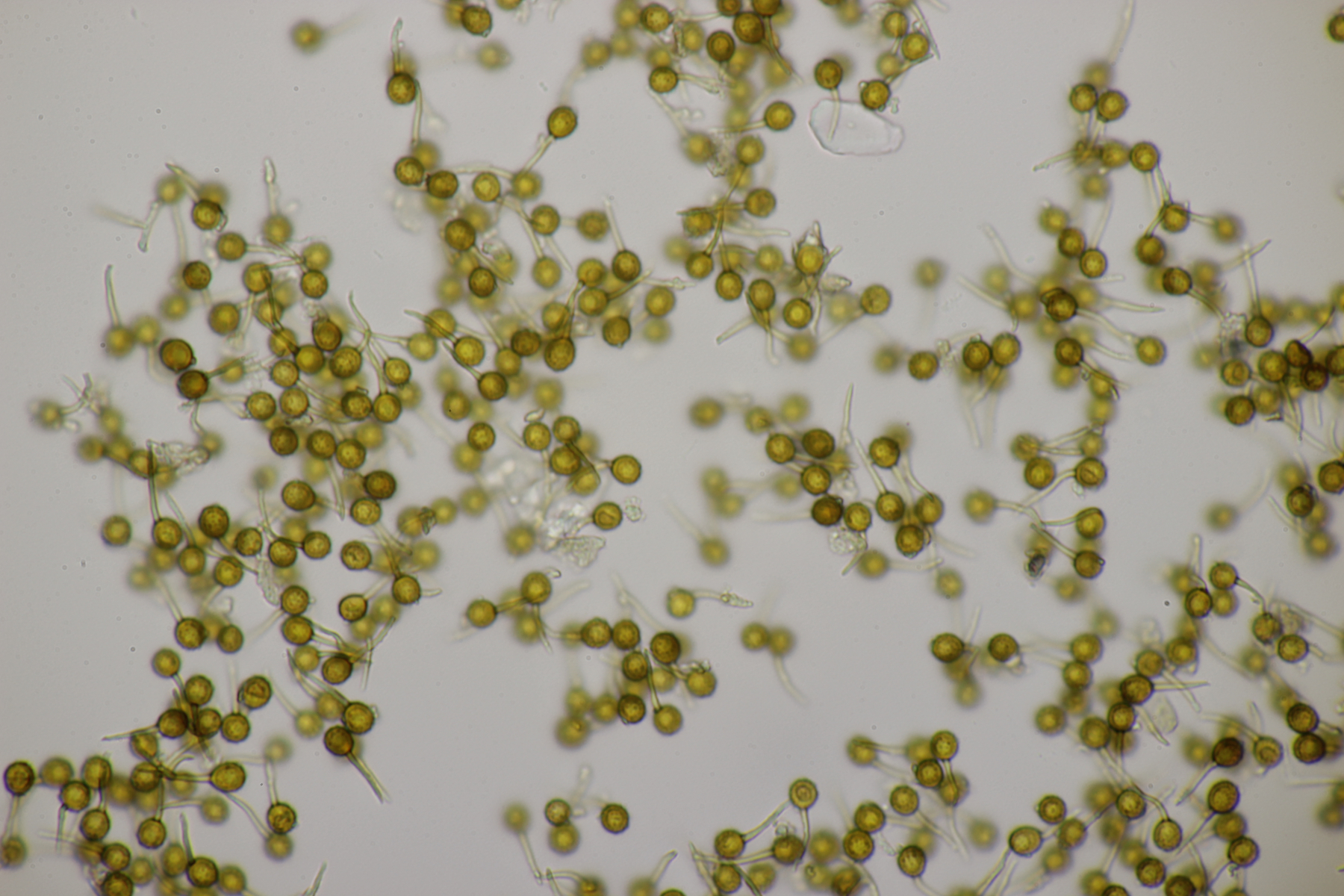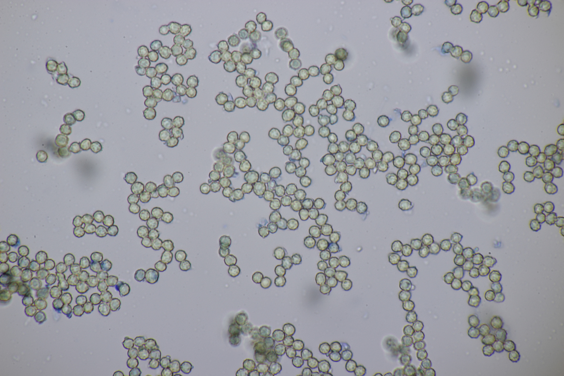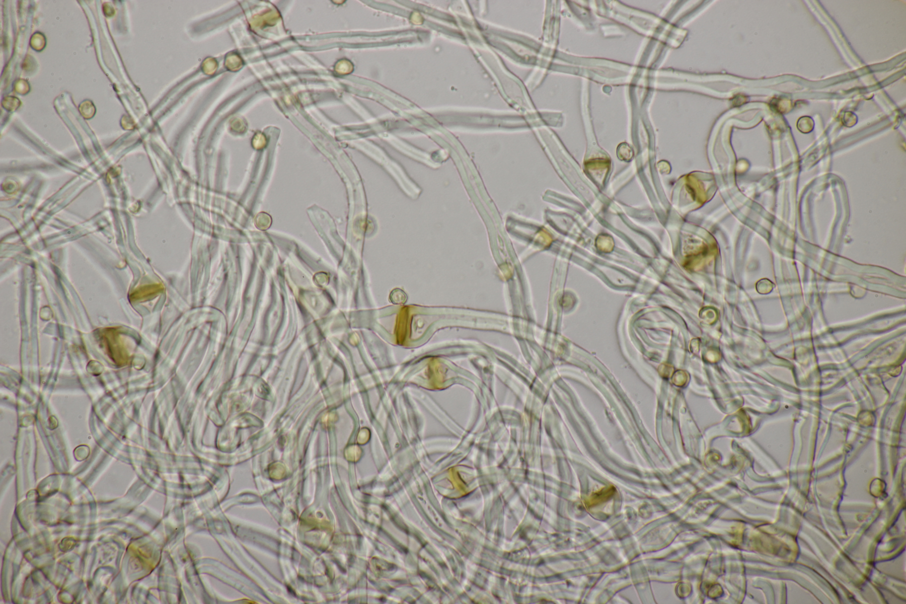 4. Den Fund hier würde ich Bovista plumbeum nennen wollen, wenn es keine Einwände gibt. Sporen (4.9+-0.4) µm x (4.5+-0.3) µm, Q=1.1+-0.1 bzw. (3.9-5.4) µm x (3.9-5.0) µm, Q=1.0-1.3, Capillitium vom Bovista-Typ ohne Poren.