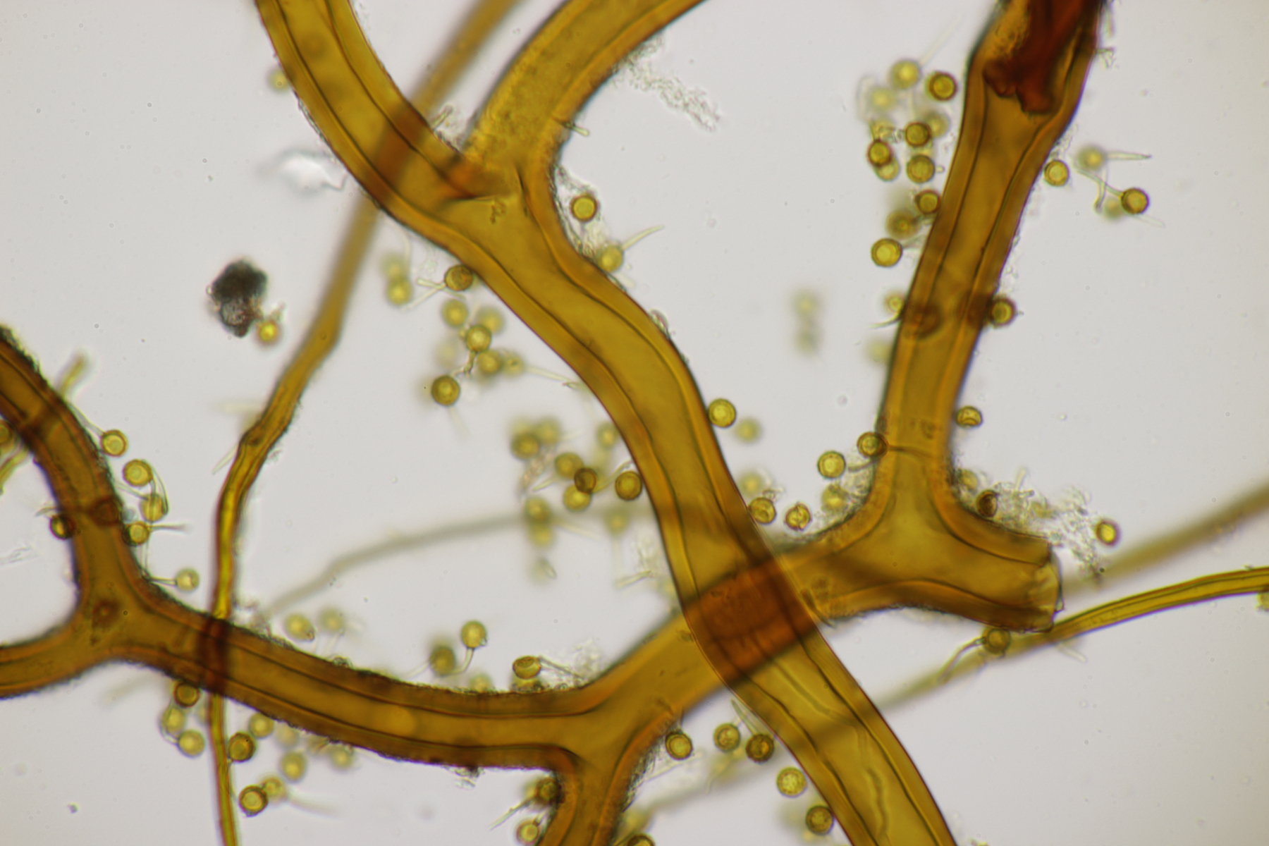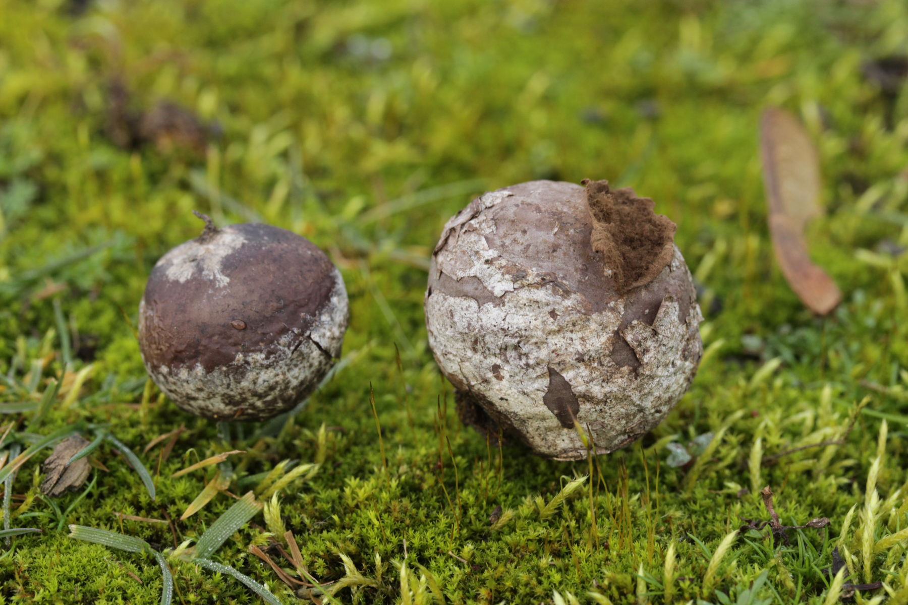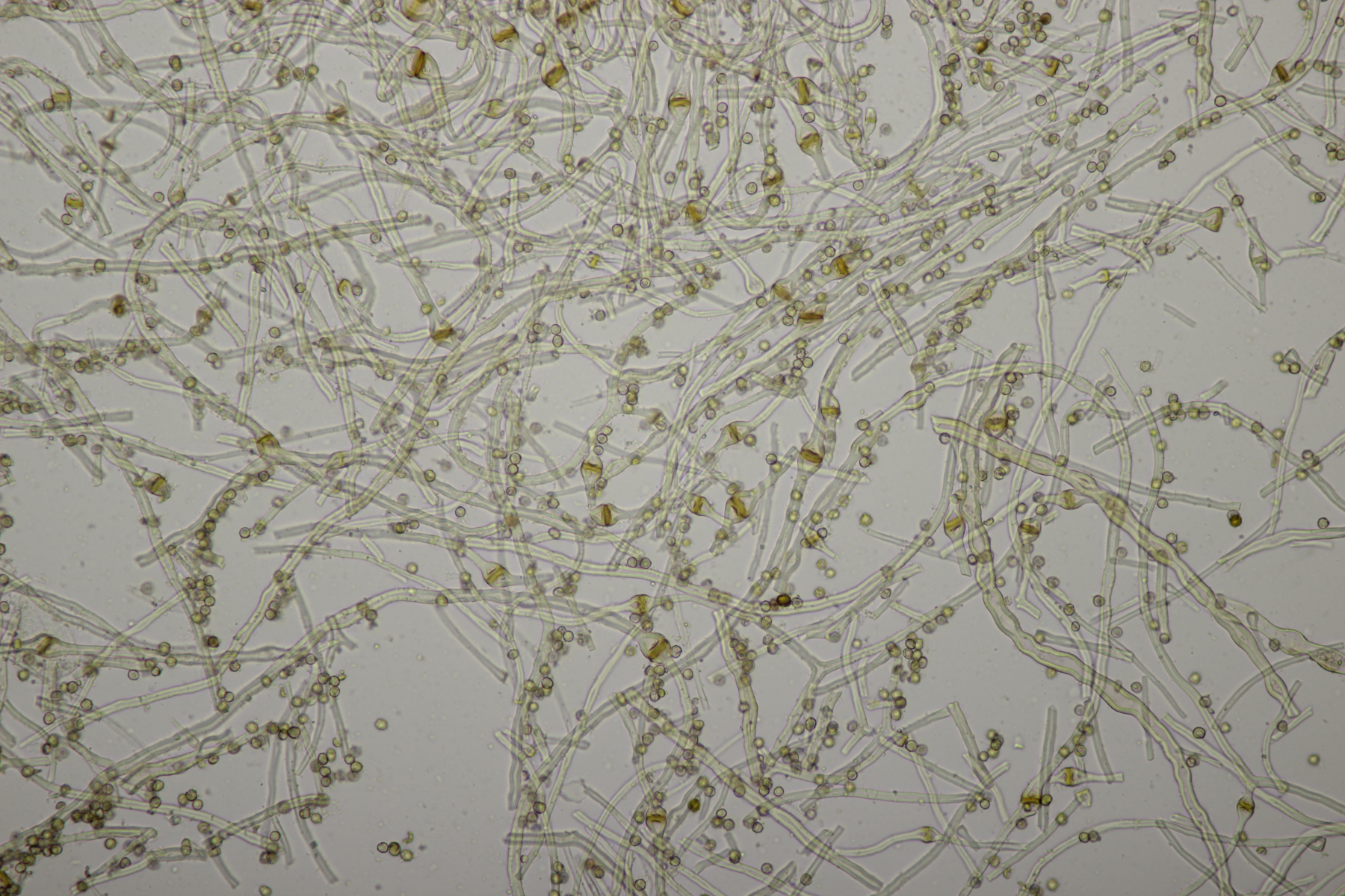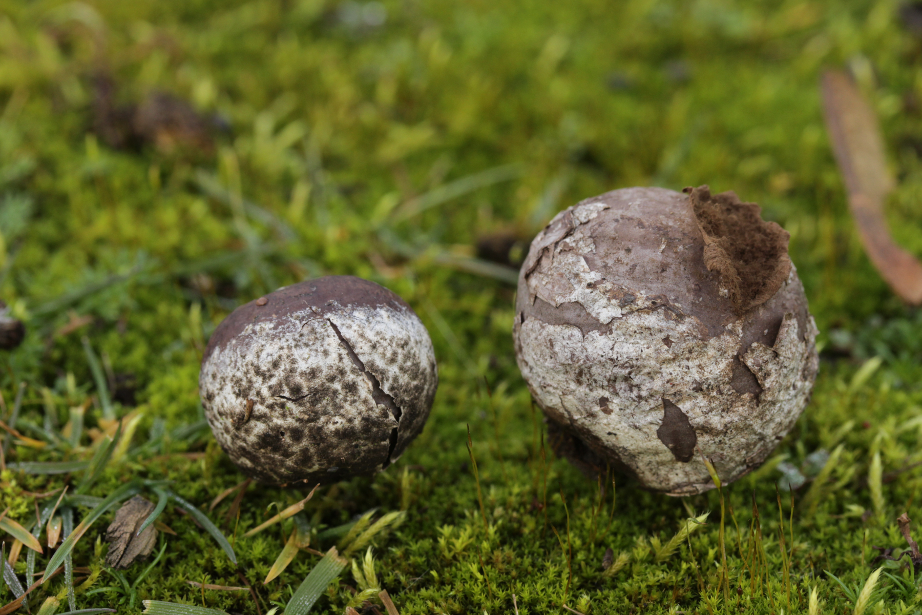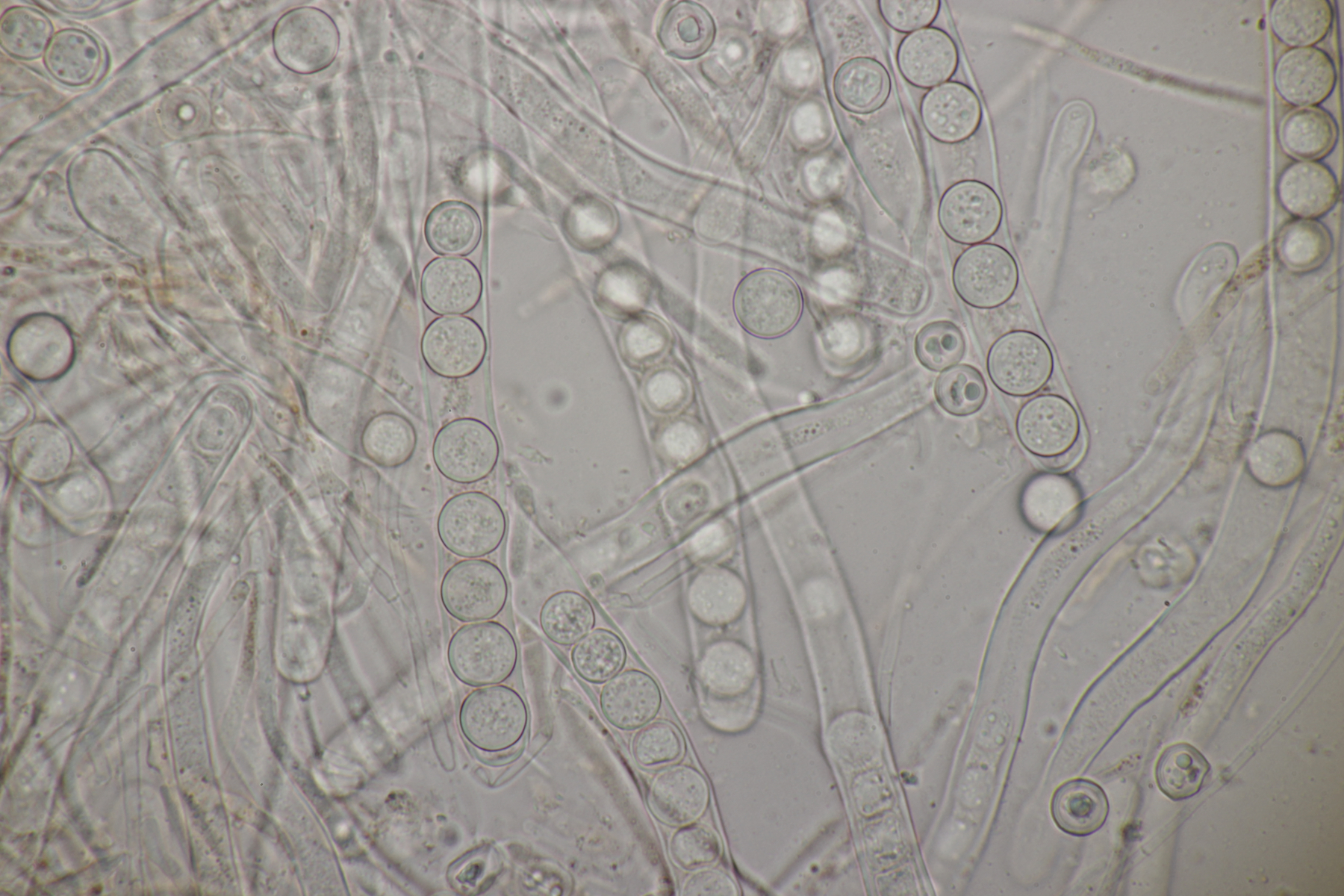 4. Den Fund hier würde ich Bovista plumbeum nennen wollen, wenn es keine Einwände gibt. Sporen (4.9+-0.4) µm x (4.5+-0.3) µm, Q=1.1+-0.1 bzw. (3.9-5.4) µm x (3.9-5.0) µm, Q=1.0-1.3, Capillitium vom Bovista-Typ ohne Poren.
