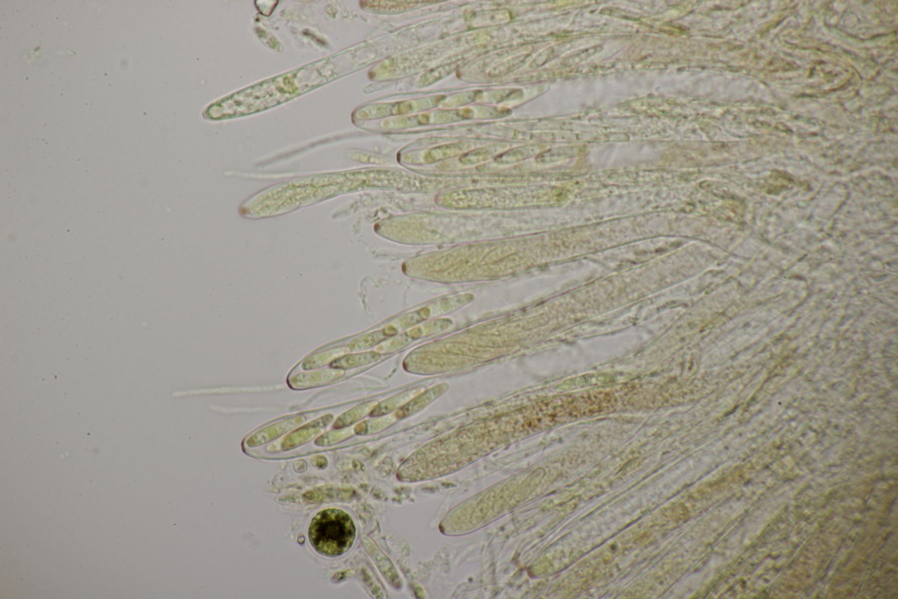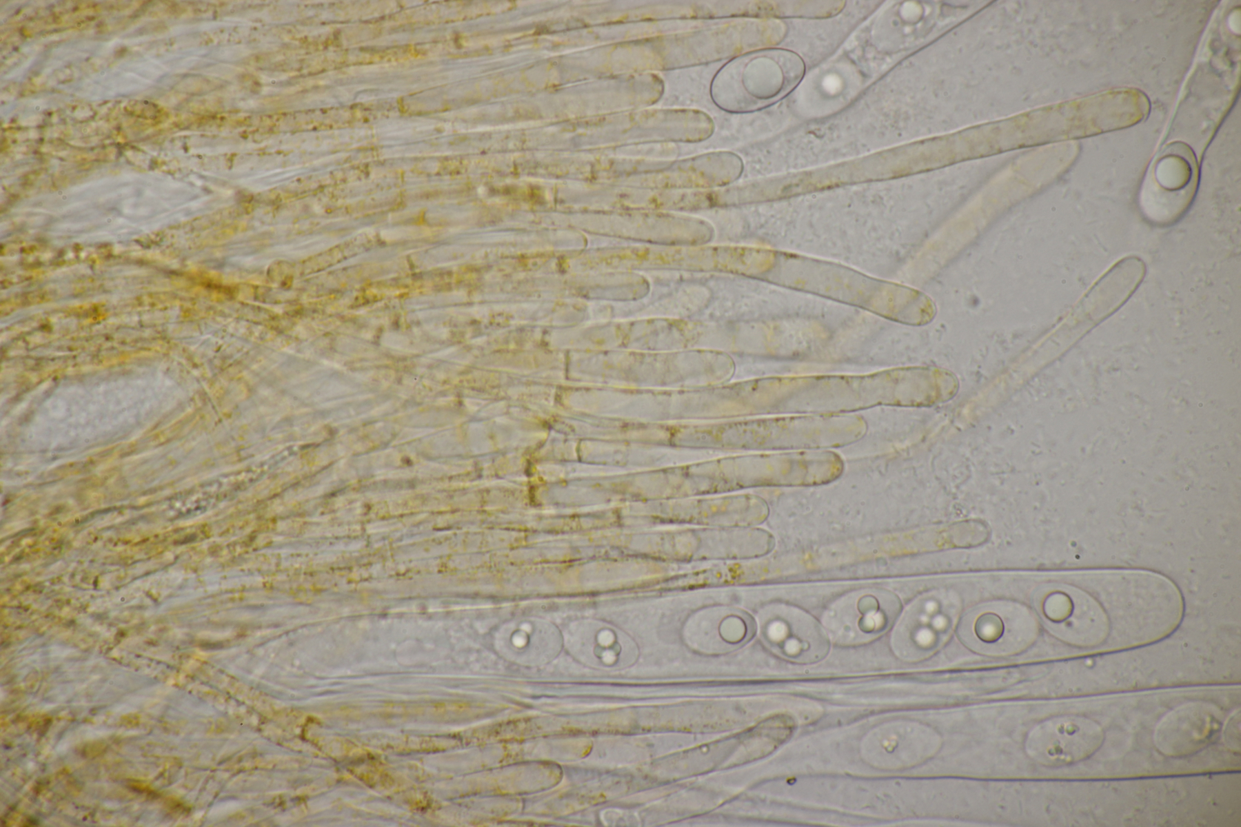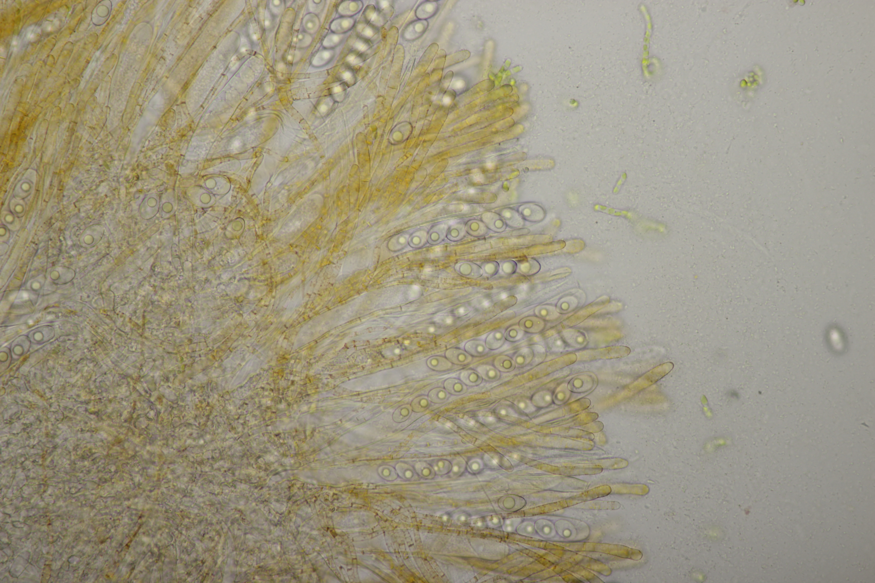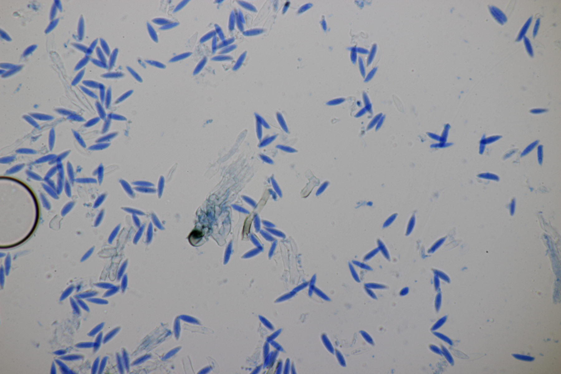 4. Den Fund hier würde ich Bovista plumbeum nennen wollen, wenn es keine Einwände gibt. Sporen (4.9+-0.4) µm x (4.5+-0.3) µm, Q=1.1+-0.1 bzw. (3.9-5.4) µm x (3.9-5.0) µm, Q=1.0-1.3, Capillitium vom Bovista-Typ ohne Poren.