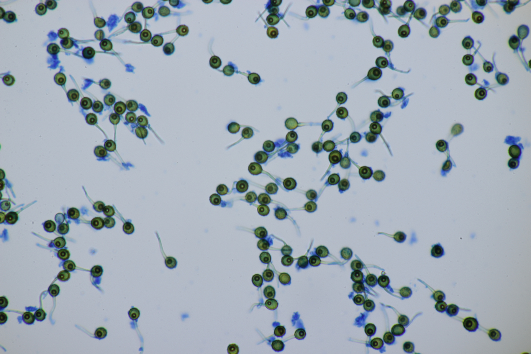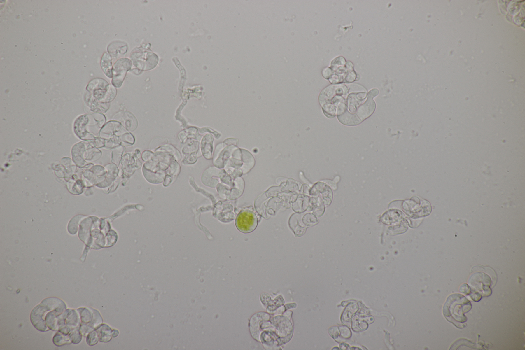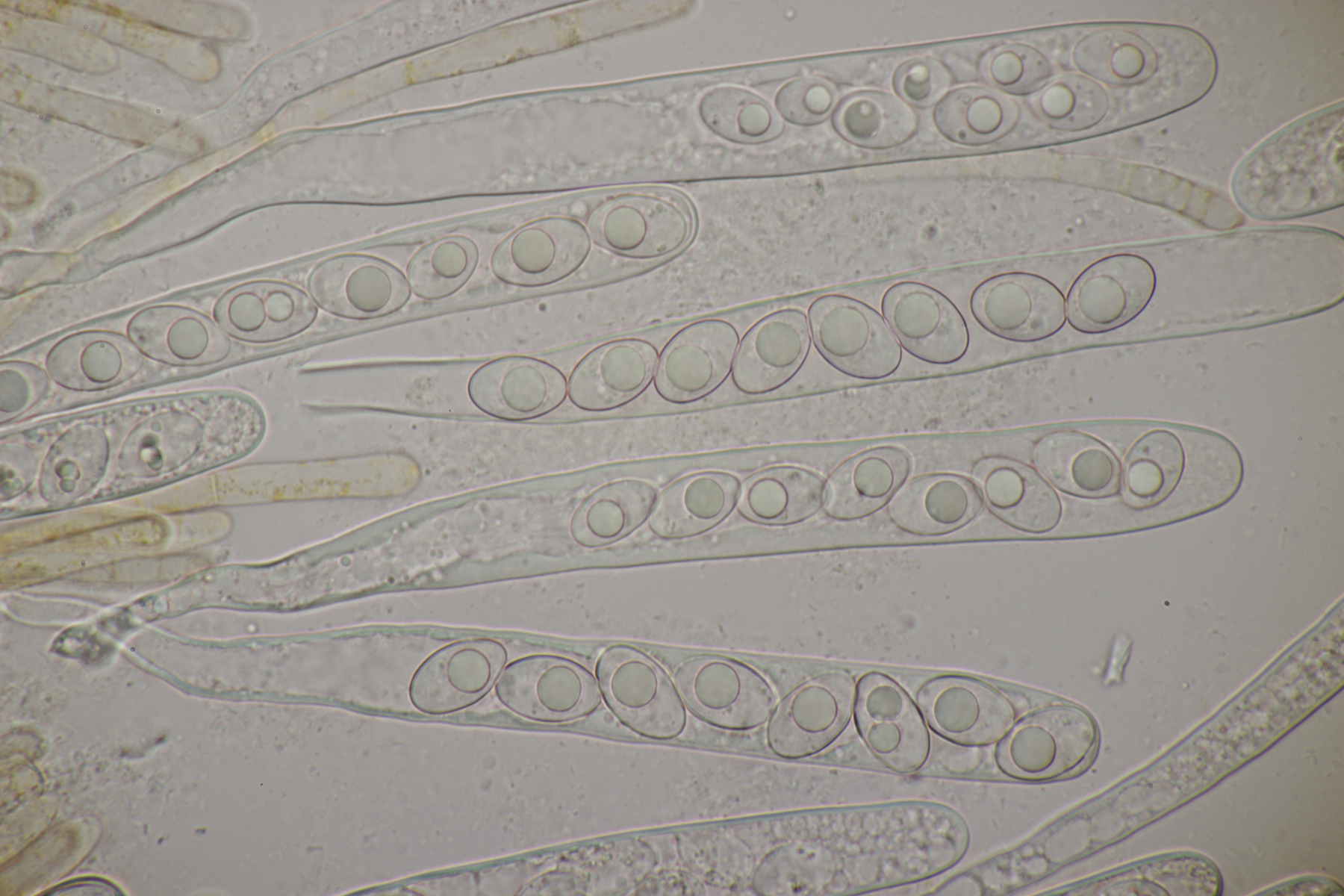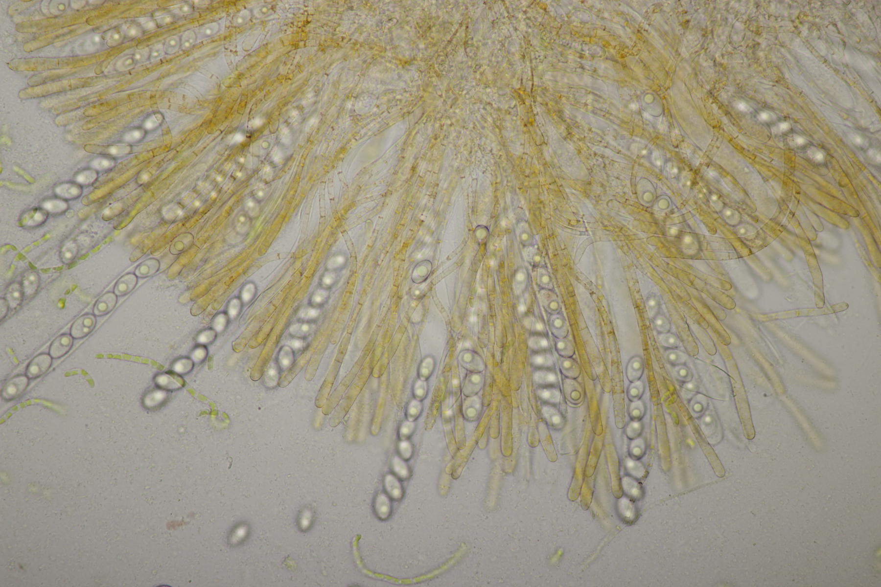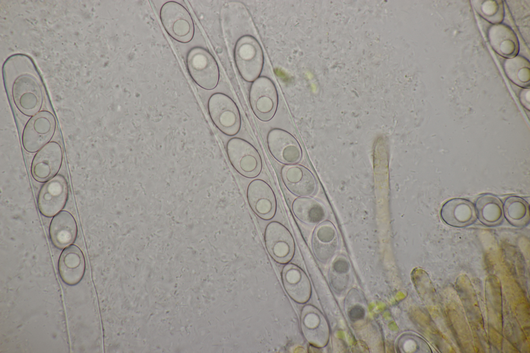4. Den Fund hier würde ich Bovista plumbeum nennen wollen, wenn es keine Einwände gibt. Sporen (4.9+-0.4) µm x (4.5+-0.3) µm, Q=1.1+-0.1 bzw. (3.9-5.4) µm x (3.9-5.0) µm, Q=1.0-1.3, Capillitium vom Bovista-Typ ohne Poren.