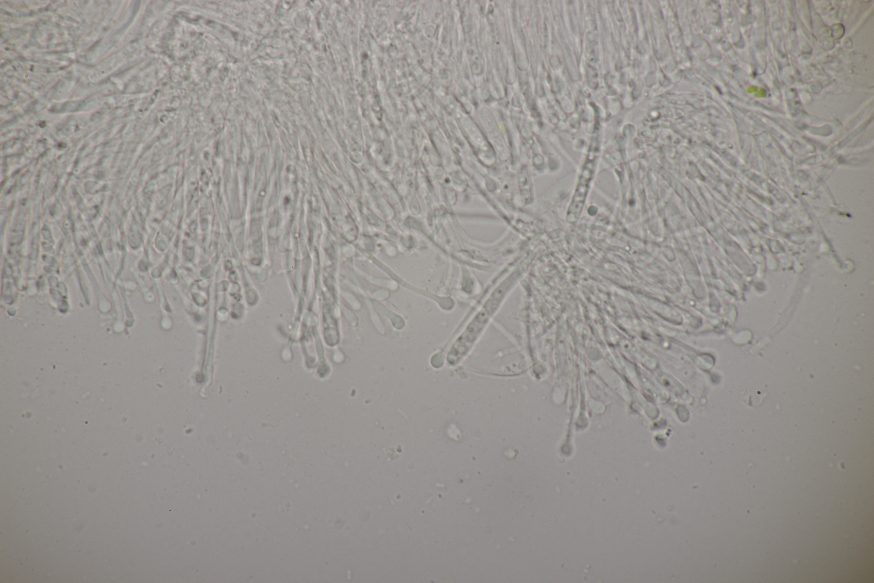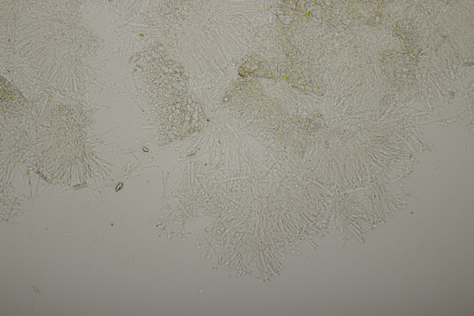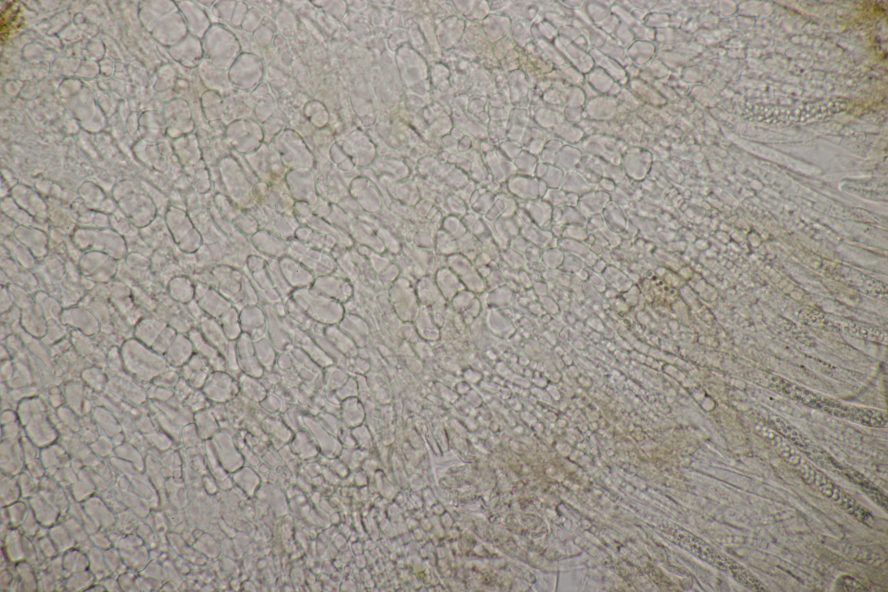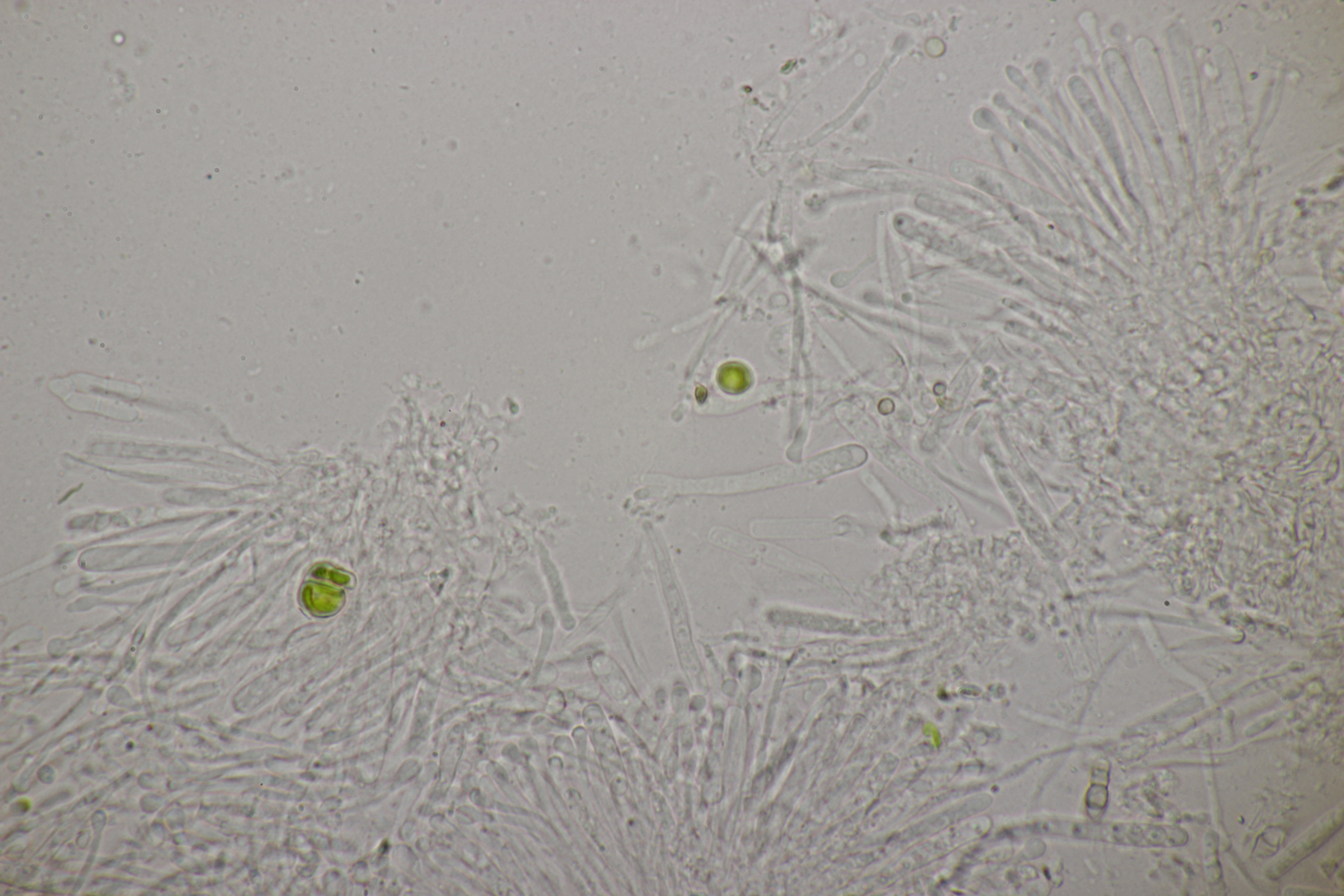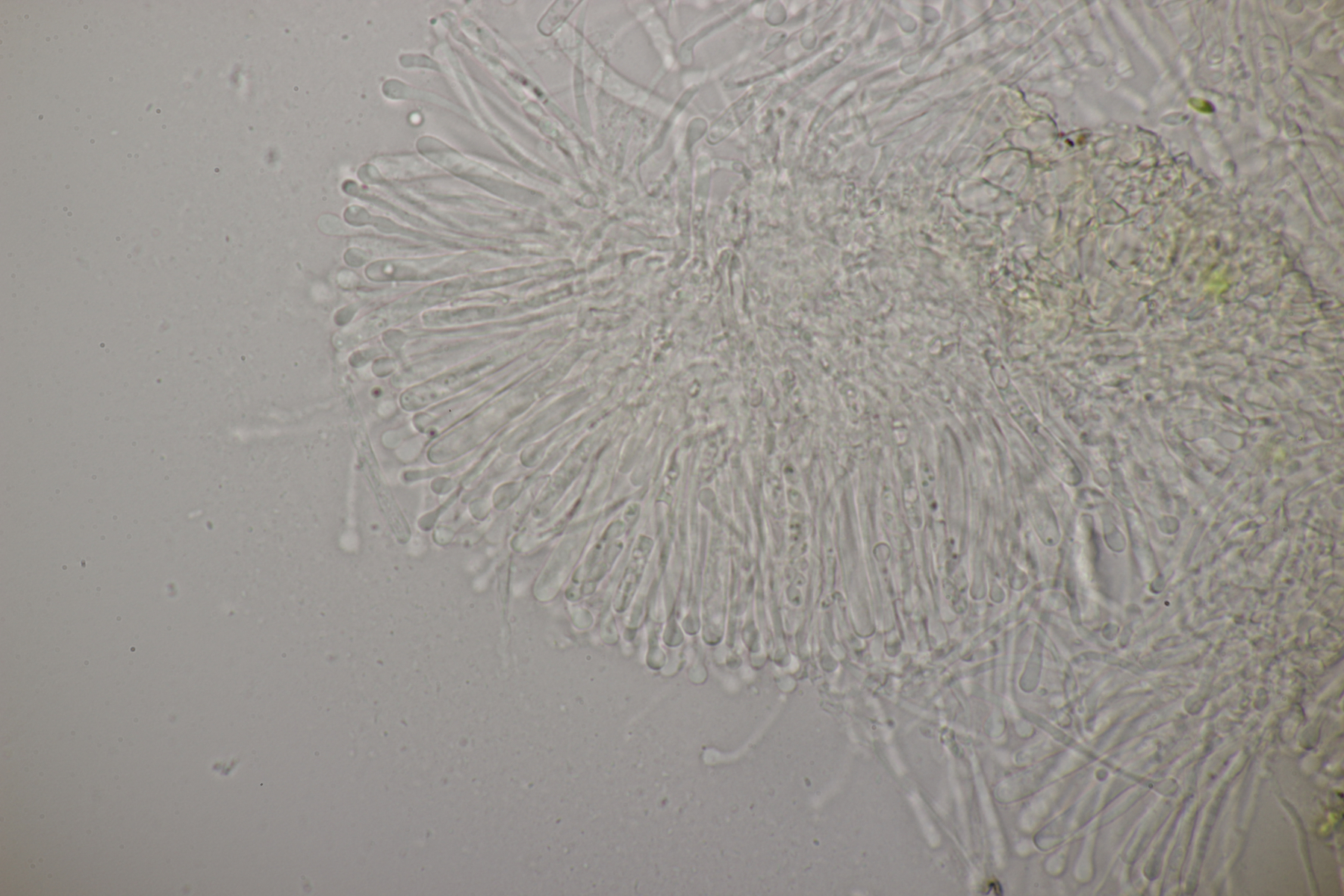 3. Ebenfalls an Eiche. Im Feld dachte ich hier erstmal an irgendwelche Heterobasidiomyceten, aber im Mikroskop zeigten sich dann Schläuche. Die Sporen messen (14.7-17.1) µm x (3.8-4.5) µm, Q=3.3-4.4, die Asci reagieren mit Lugol blau und ich meine Haken gesehen zu haben. Paraphysen konnte ich keine entdecken. Hat jemand hier eine Idee?