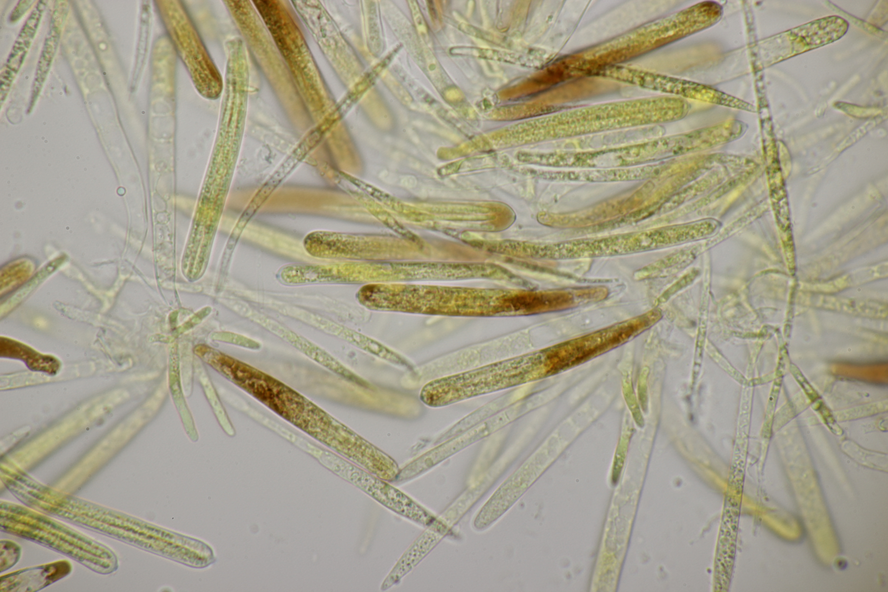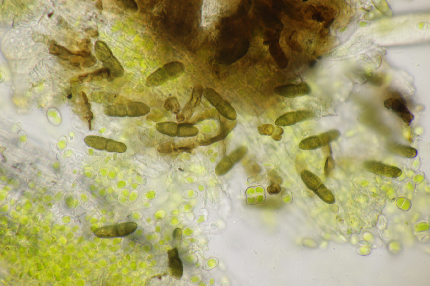 16. Nochmal ein Ascomycet auf Quercus robur, wo ich außer Lanzia/Rustroemia/Hymenoscyphus-Ecke keine rechte Idee habe. Sporen messen (17.3+-1.3) µm x (5.9+-0.4) µm, Q=2.9+-0.3 bzw. (15.0-19.6) µm x (5.2-6.6) µm, Q=2.6-3.7.