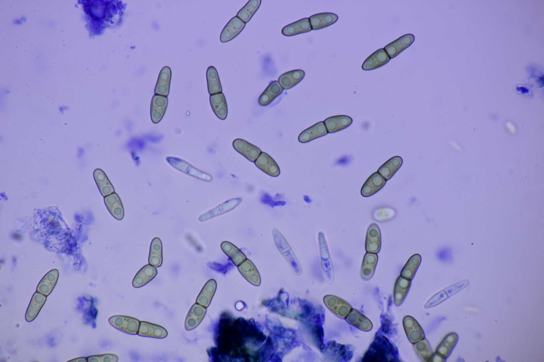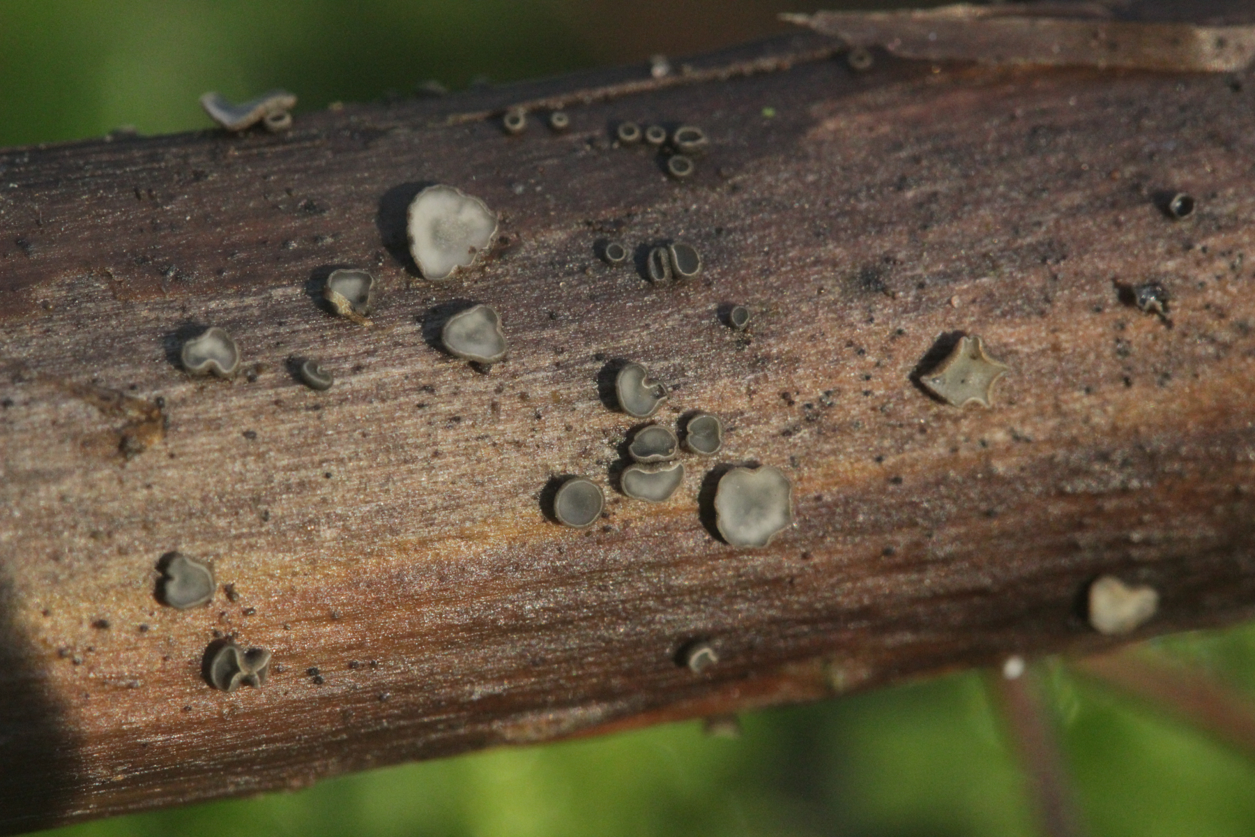 6. Letzte Woche hatte mir Karl bei unserer Runde im Depot noch erzählt, daß es an alten Stängeln von Digitalis eine Pyrenopeziza gibt, jetzt habe ich sie gefunden: Pyrenopeziza digitalina. Sporen messen (7.4-8.5) µm x (1.8-2.3) µm.