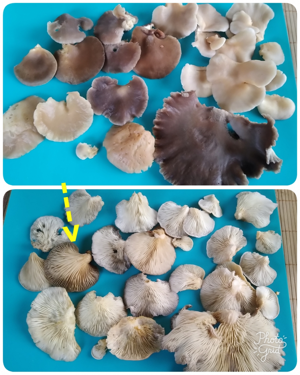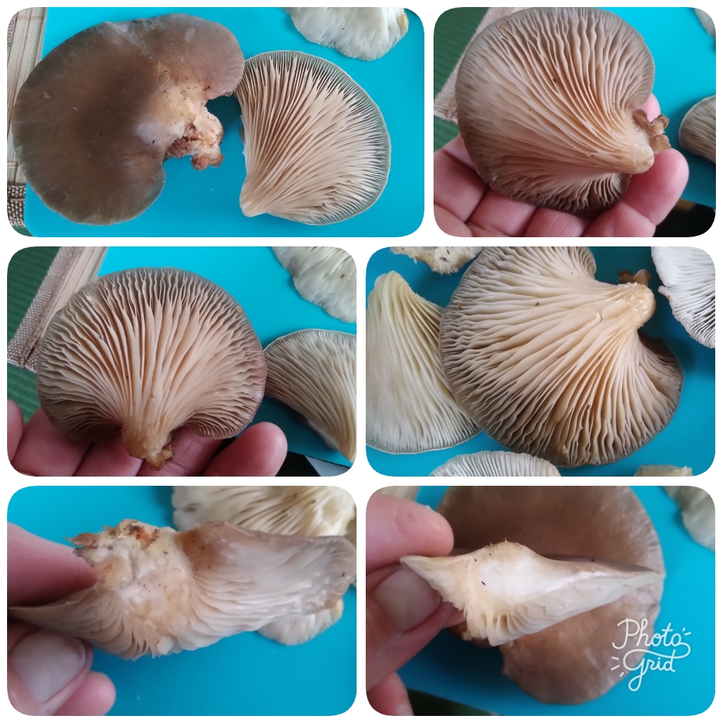 Hallo und einen schönen Heiligabend đ. Ich bin mir nach meinem Erstfund letzte Woche noch sehr unsicher. Eben habe ich wieder Pilze gesammelt. Alle riechen wie Austernseitlinge, alle wuchsen an Birken im Umkreis von vielleicht 200m. WĂ€hrend ich mir bei den hellen inzwischen sicher bin, irritieren mich die mit dem dunklen Hut, vor allem der eine ( Pfeil), der auch dunklere Lamellen hat. Geschmacklich konnte ich auch keinen Unterschied erkennen. Ich wĂ€re fĂŒr Hilfe dankbar. Falls die Bilder auf den Collagen zu klein sind, Stelle ich gerne die Einzelbilder ein. đ