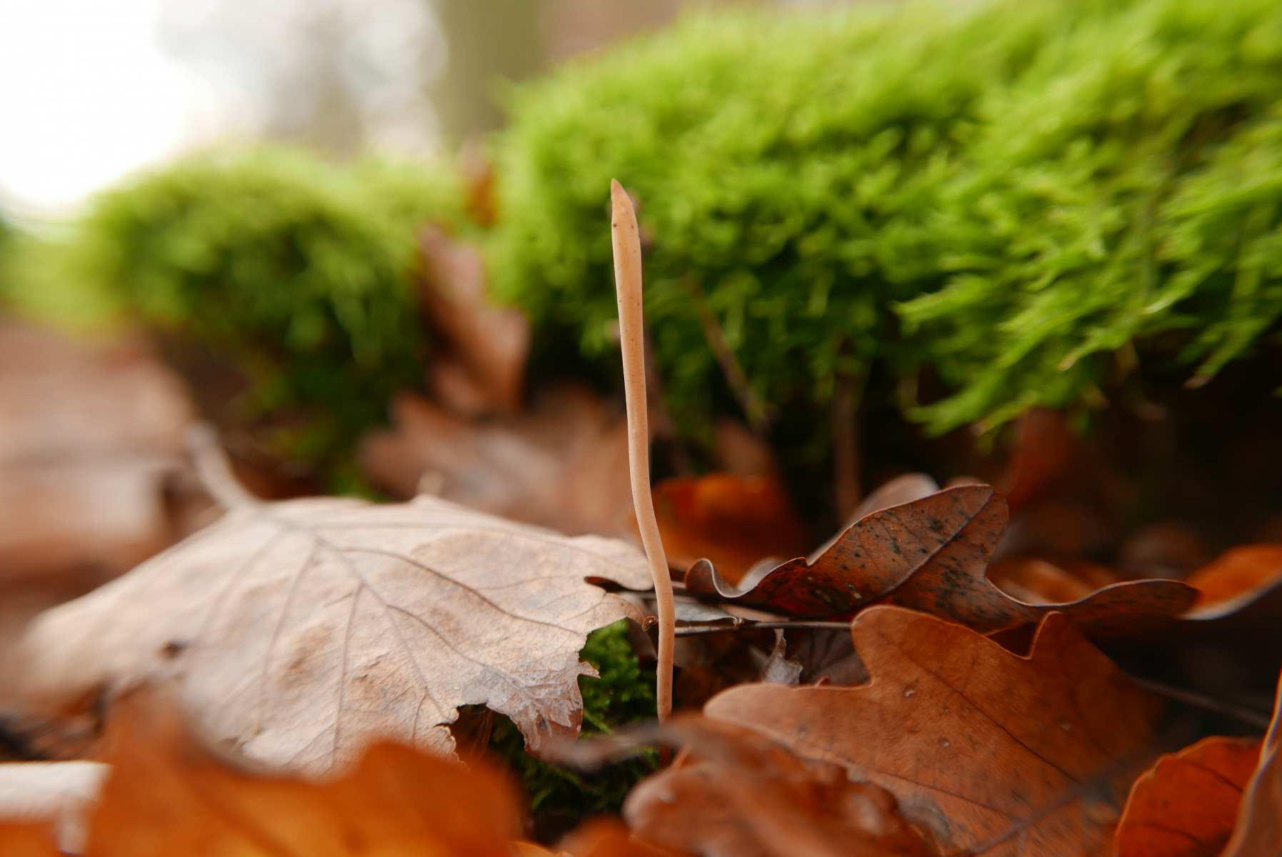 Eigentlich wollte ich die Zwergenpilzchen auf Eichenblatt wiederfinden, die ich zwei Tage zuvor mit dem Handy abgelichtet hatte.
