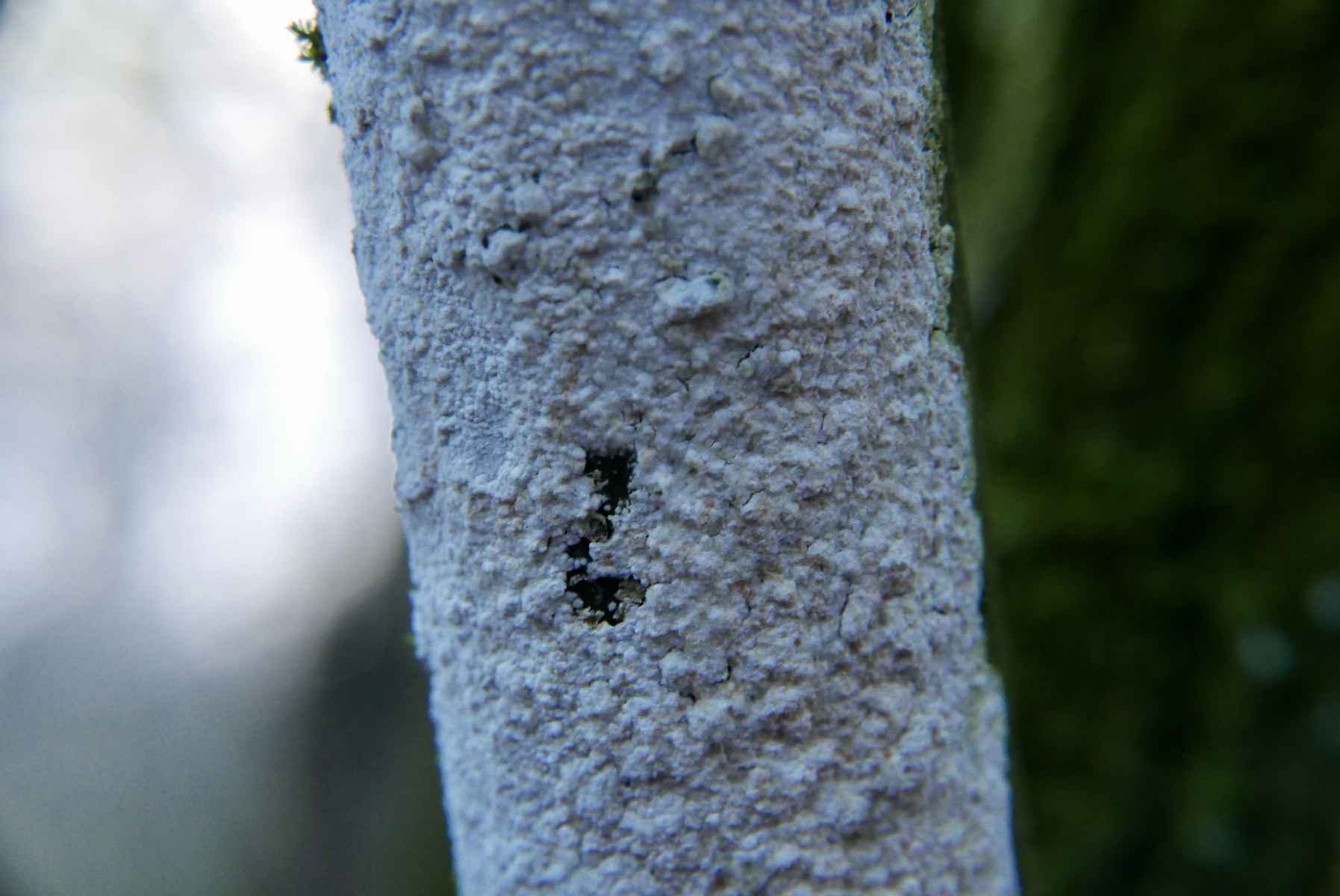 14. Noch mehr weißer Belag, an einem Holunderstamm, vielleicht Weißer Holunderrindenpilz?