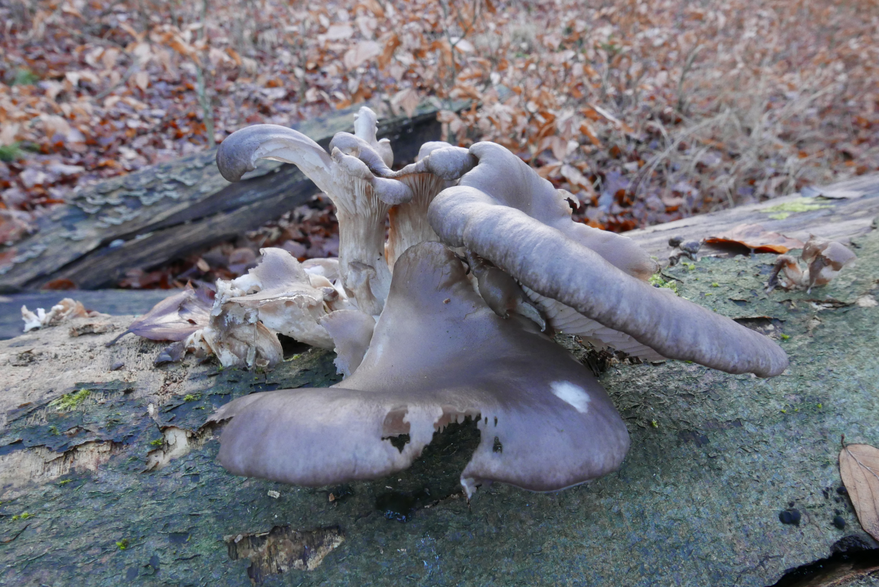 16. Auf dem Rückweg fand ich dann endlich nochmal eine neue Austernstelle: Eine geborstene Buche, dieser Teil lag auf dem Waldboden. Diese Fruchtkörper waren zwar schon drüber, aber da kommt sicher noch mal was nach.
