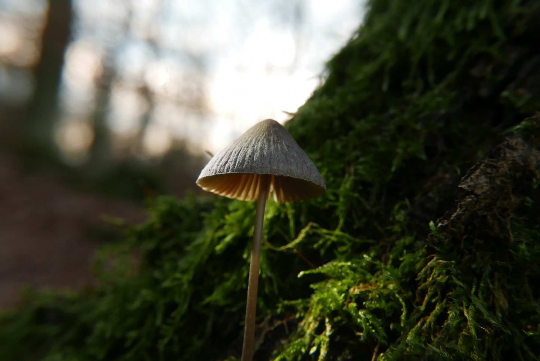 Eigentlich wollte ich die Zwergenpilzchen auf Eichenblatt wiederfinden, die ich zwei Tage zuvor mit dem Handy abgelichtet hatte.