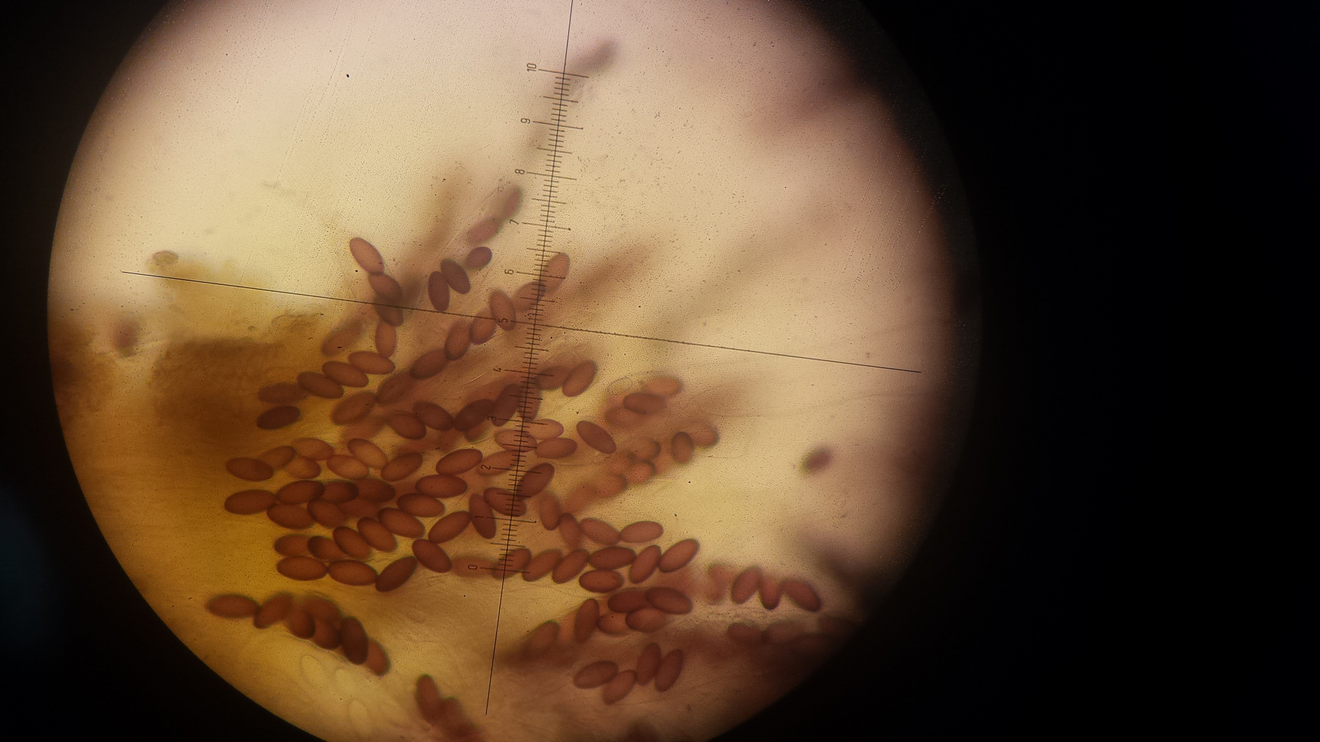 Deinen Bildern nach zu urteilen sind die Sporen eher schlank und ca. halb so breit wie die Länge, müssten also etwa 11-12 µm messen.