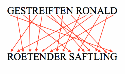 Da habe ich mit dem "gestreiften Ronald" ein Anagramm eingebaut (zumindest die "wer-bin-ich?"-Miträtsler könnten meine Leidenschaft für Anagramme kennen ;))