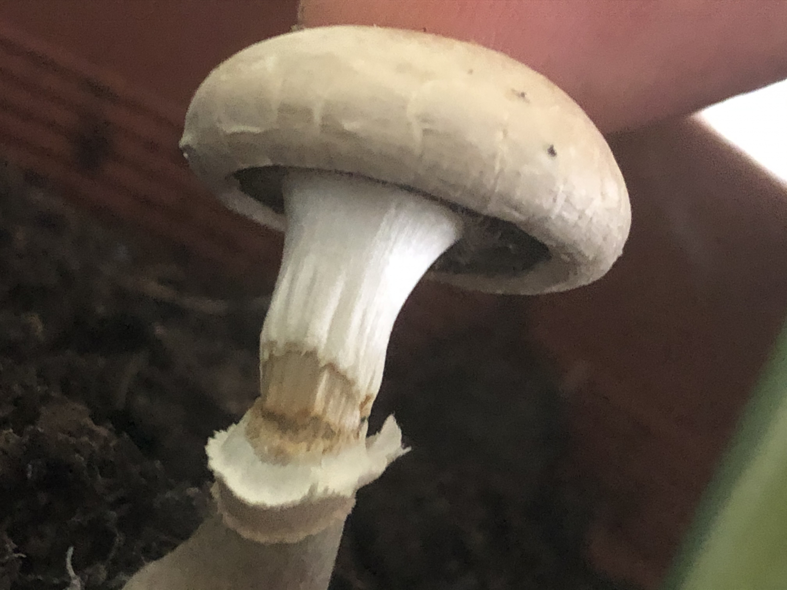 ich habe eben einen mir unbekannten Pilz im Blumentopf meiner Monstera entdeckt. Die Pflanze habe ich erst vor kurzem von einem Freund geschenkt bekommen, es ist also alles möglich. Als Laie meine ich, könnte es ein verkorkster Champignon sein. Dazu passen ja die dunklen, vom Stil abgelösten Lamellen, aber mich irritiert die etwas verdickte Knolle. Was sagt ihr? (Keine Sorge, ich werde ihn nicht essen, es ist mehr Neugierde😁)