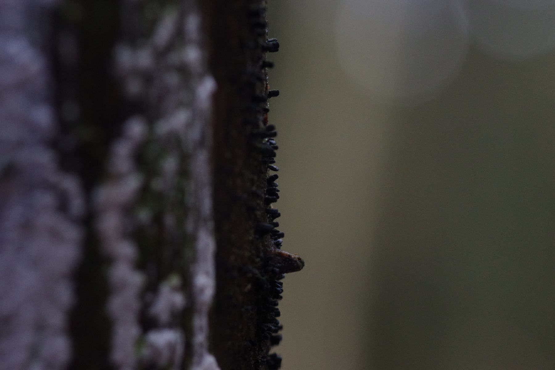 6) schwarze spatelförmige Objekte an toter (wilder) Birne, da werde ich wohl Stativ und Beleuchtung brauchen