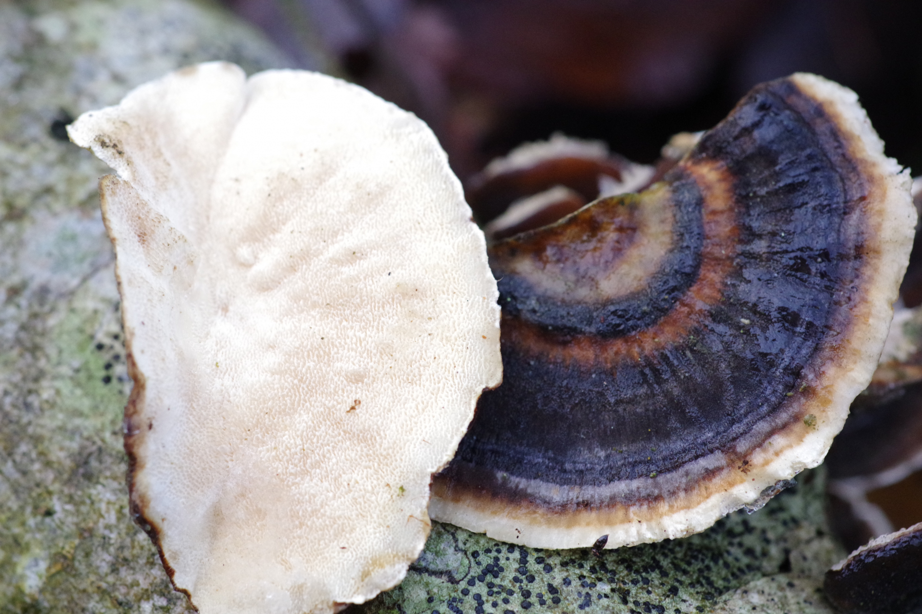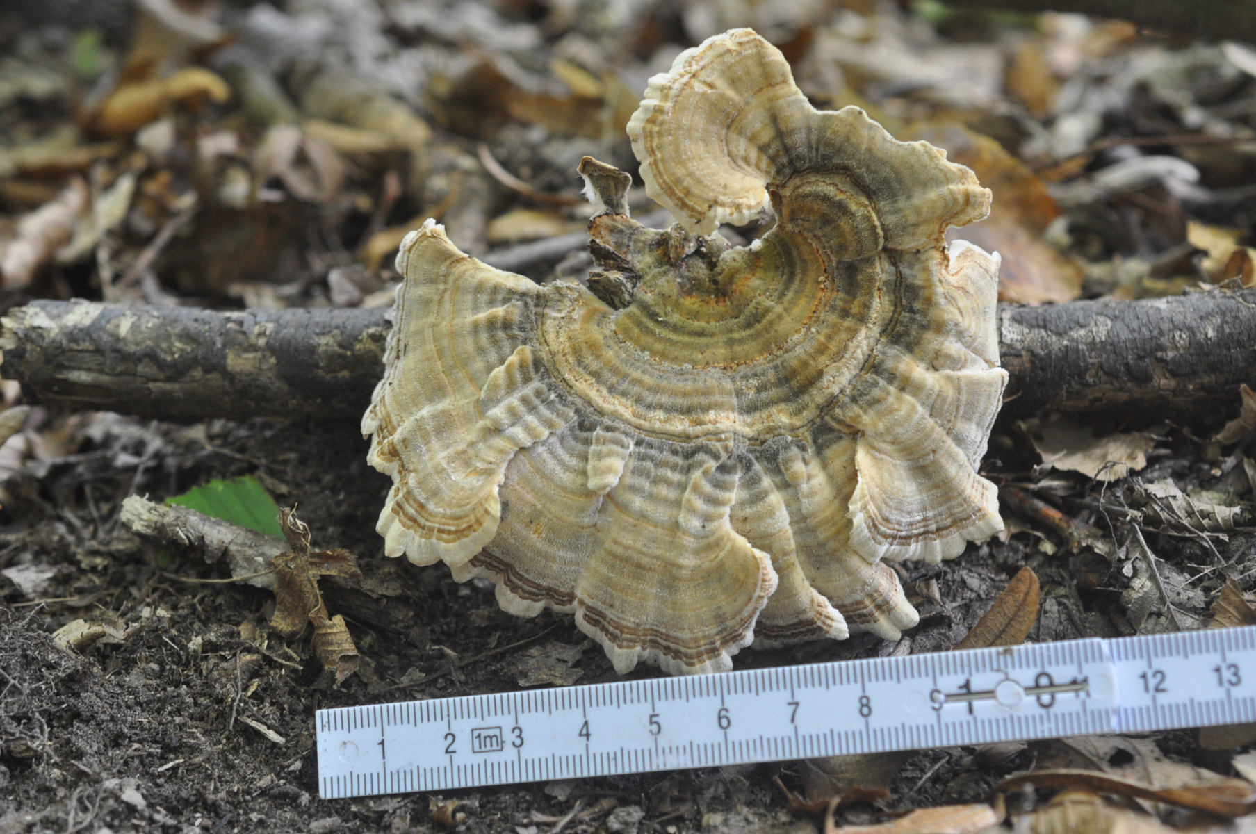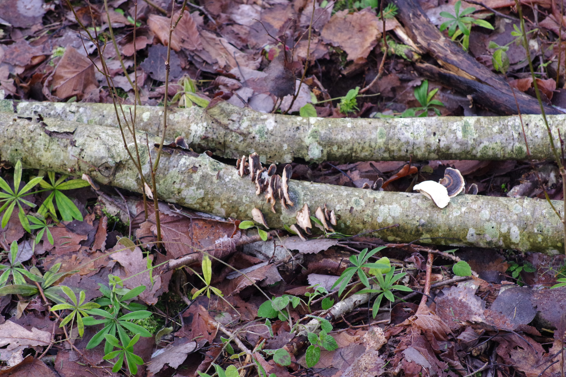 8) an Grauerle, wohl Trametes versicolor