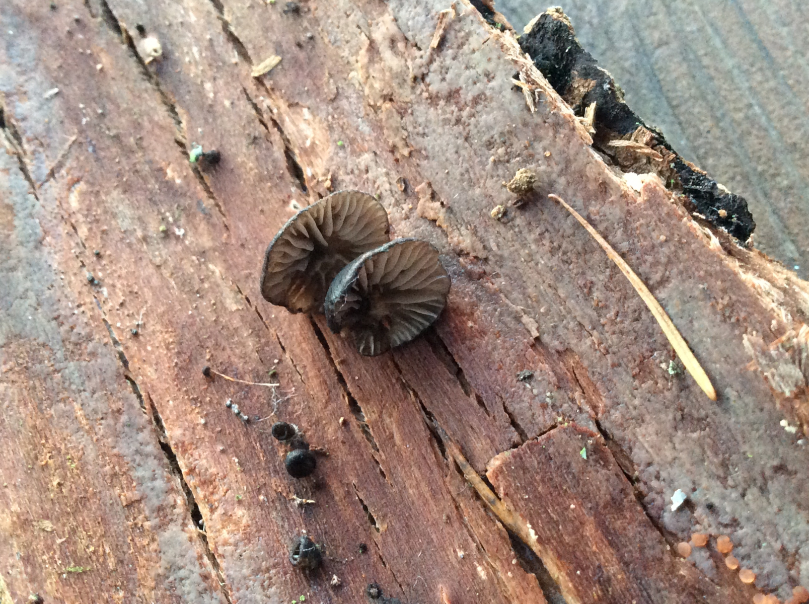 Ich könnte mir allerdings auch Resupinatus applicatus, den Dichtblättrigen Zwergseitling, vorstellen.