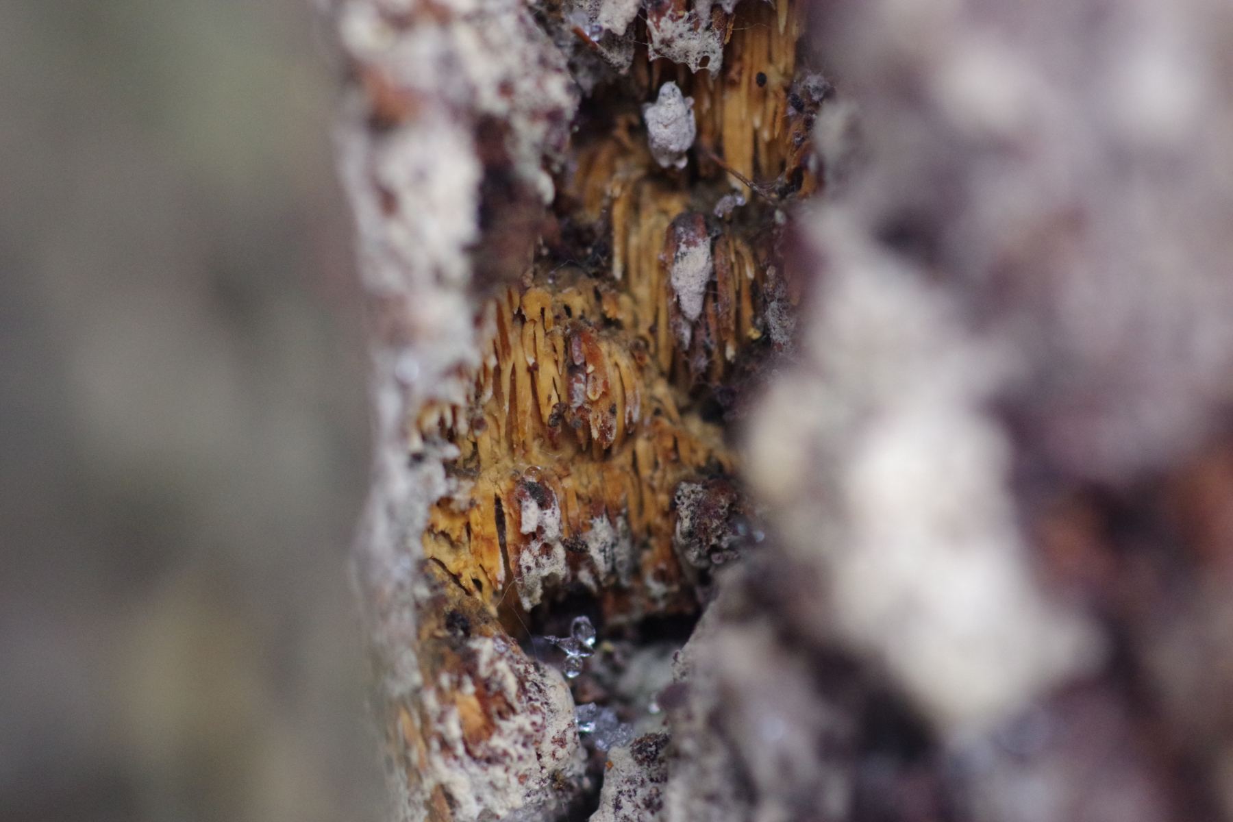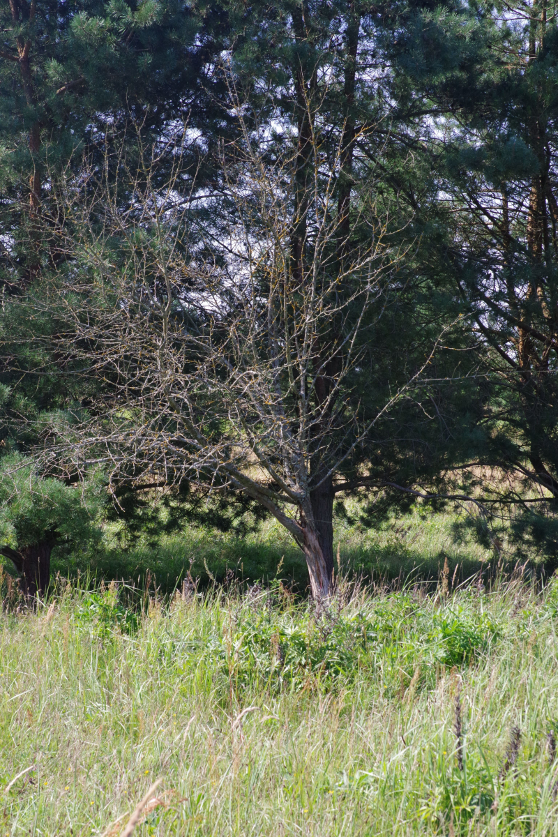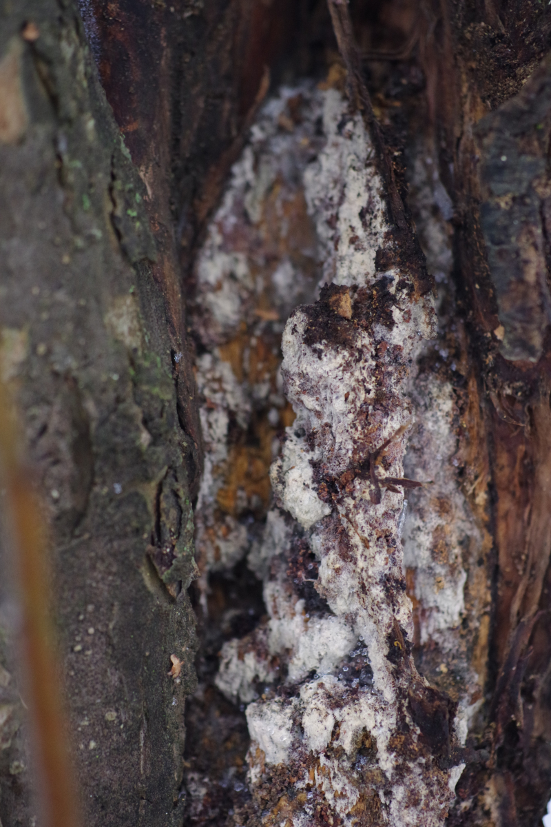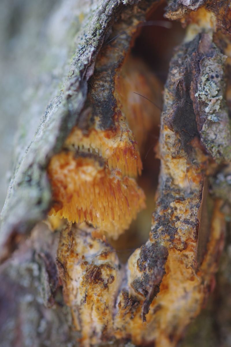 Hallo allerseits, an diesem toten Apfelbaum (15-20 Jahre, wild gekommen, den haben die Schafe auf dem Gewissen) auf der Weide habe ich heute diesen teilweise vom Pferd abgeschubbelten Pilz entdeckt.