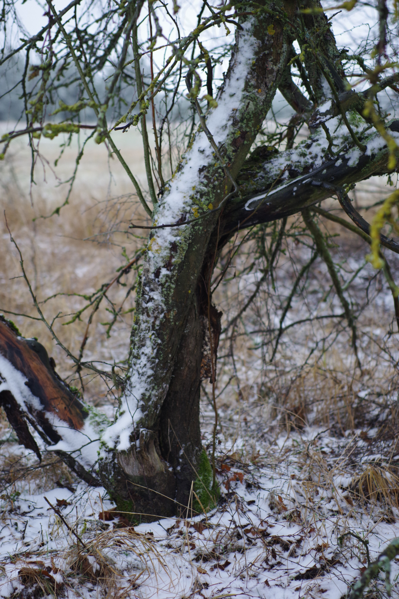 Hallo allerseits, an diesem toten Apfelbaum (15-20 Jahre, wild gekommen, den haben die Schafe auf dem Gewissen) auf der Weide habe ich heute diesen teilweise vom Pferd abgeschubbelten Pilz entdeckt.